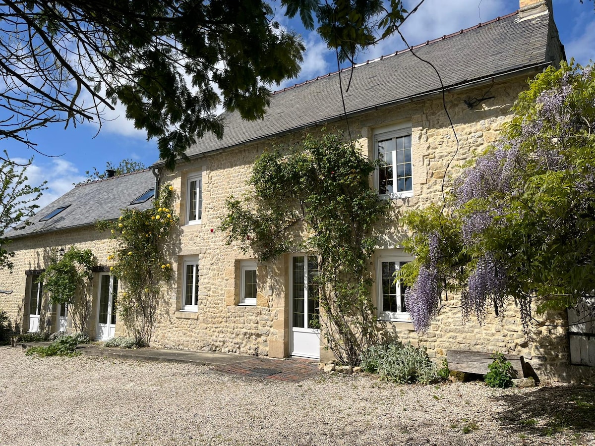 Ancienne maison de caractère fin 18eme récemment rénovée. Le logement proposé correspond aux 2/3 de la bâtisse, côté gauche. Les hôtes peuvent profiter d'une entrée privative et de pièces de vie entièrement dédiées. A l'extérieur le calme de la campagne permet de se ressourcer. Côté activité : un billard, jeux de sociétés, terrain de pétanque, vélo, proximité des animaux. La maison est située à 18 km de Bayeux, 25 km de Caen et des plages du débarquement, à 1 heure du Mont Saint Michel.