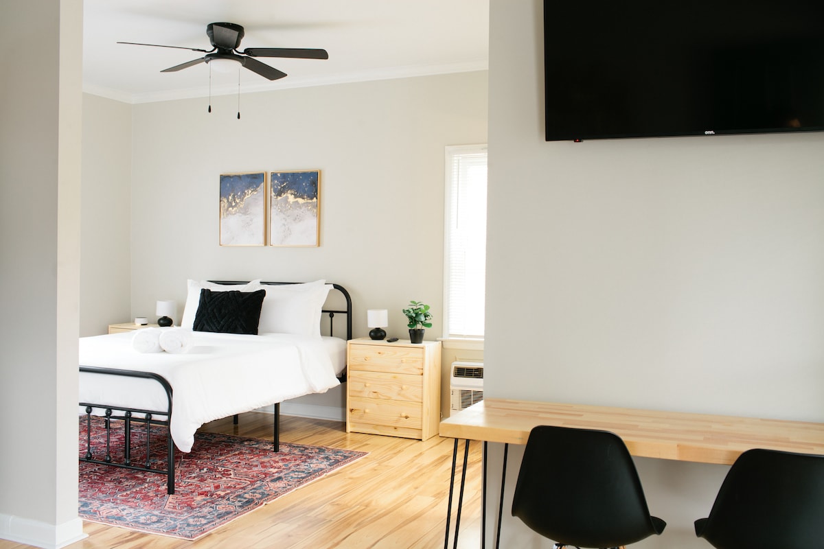 Welcome to our beautifully renovated studio in Montgomery’s historic Cottage Hill neighborhood. Surrounded by elegant Queen Anne homes, this cozy retreat blends timeless charm with modern comfort and thoughtful touches throughout. Enjoy easy access to civil rights landmarks, popular restaurants, local cafés, and downtown attractions just minutes away. Ideal for weekend getaways, business trips, or extended stays—book today and relax while fully enjoying Montgomery in comfort, style, and charm.