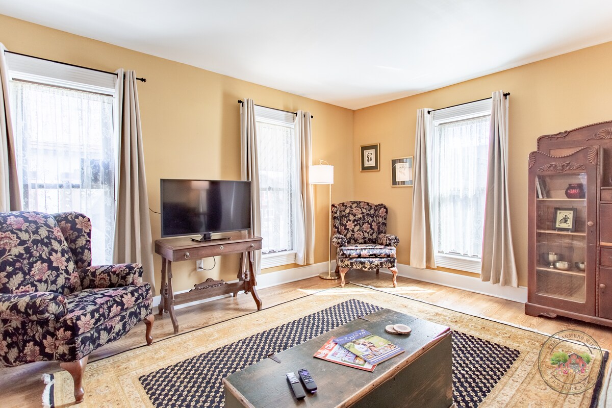 Welcome to my upper flat (private staircase to 2nd story) one block from Downtown New Glarus where you will find charming shops, tasty eats & activities! This unit can accommodate 4 people. There is a king sized bed & queen pull-out couch. Kitchen is fully stocked with a refrigerator, range/oven, toaster & coffee maker. Complete with cozy eat-in area! Living room has wall of windows & smart TV. W/D are included.