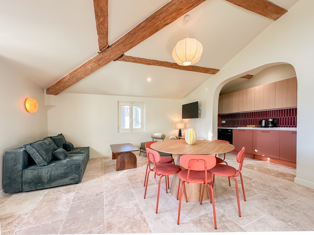 Idéalement situé au cœur de « L’Écusson », le centre historique de Montpellier, cet appartement réunit une magnifique salle à manger avec cuisine ouverte dans une architecture 17ème siècle à deux pièces voûtées du 14eme siècle : Une chambre avec coin bureau et un salon musique et cinéma bénéficiant d’une excellente acoustique. Un patio avec verrière ouvrante permet l’accès à la salle d’eau avec très belle douche à l’italienne.