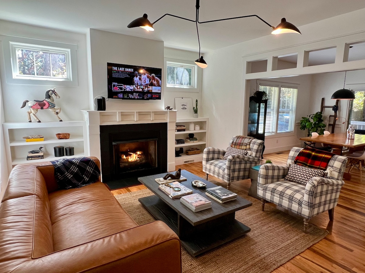 Vue imprenable sur la montagne à seulement 5 minutes du centre-ville de Black Mountain. Ce superbe refuge de montagne moderne a été conçu pour la détente, les échanges et des séjours inoubliables. Profitez d’un salon au style chalet chic conçu pour admirer le coucher du soleil, d’une cheminée chaleureuse, d’une salle de jeux d’arcade et d’un bain à remous couvert niché sous la terrasse. Que vous souhaitiez explorer les Blue Ridge Mountains, faire la fête avec des amis ou simplement vous détendre, ce magnifique lieu de séjour est l’escapade dont vous rêvez.