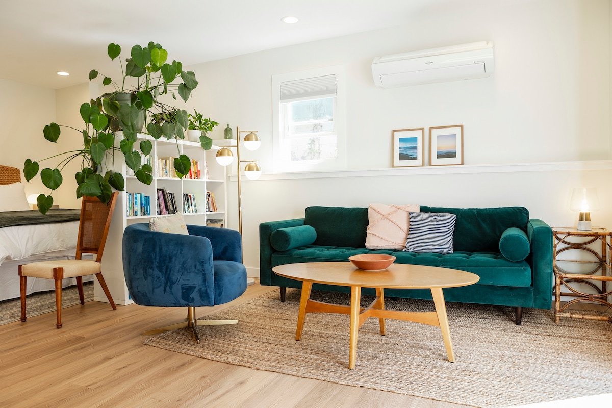 Discover this cozy Boho carriage house in Black Mountain, perfectly located just 3 minutes from downtown, 10 min to Montreat, and 20 min to Asheville, Biltmore and fall foliage on the Blue Ridge Parkway. Nestled in a tranquil setting, our charming retreat features stylish interiors and a comfortable queen bed. Ideal for couples, friends, or solo travelers, you can explore Black Mountain's shops, restaurants, hike nearby trails, or enjoy Asheville's vibrant arts and culture scene nearby.