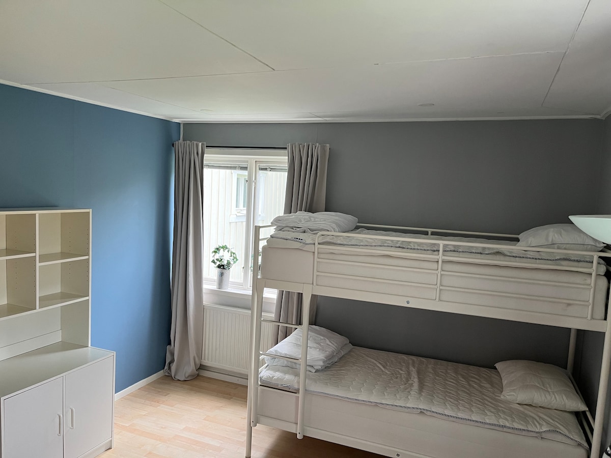 Vous serez proche de tout ce que Mora et Dalarna ont à offrir dans ce logement, de nombreux lits superposés et des possibilités de stationnement, de buanderie, de stationnement pour vélos, etc. Une cuisine et des toilettes/douche privées sont disponibles. À proximité immédiate du centre-ville, de la piste de ski de fond Vasaspåret, du terrain de football, du terrain de floorball, du court de tennis, de la piscine, du bowling, du musée Zorn, des aires de jeux, etc. En voiture, vous pouvez également rejoindre le karting, les pistes de haute altitude, les pistes de slalom. Il y a beaucoup à faire toute l'année, pour plus de conseils, visitez : moraoutdoor.se visitdalarna.se bikingdalarna.se tomteland.se