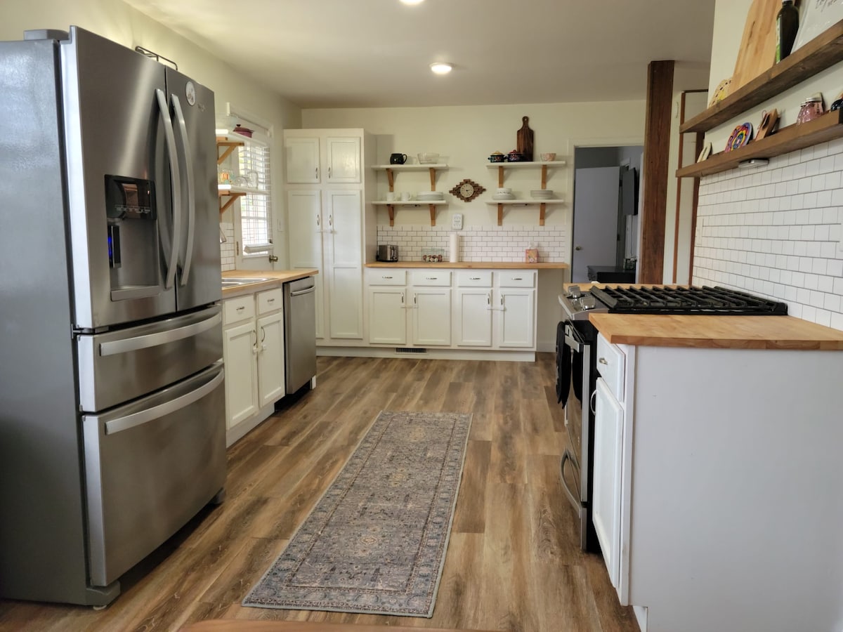 C'est un excellent espace pour les familles et les groupes de travail. Si vous avez des animaux de compagnie, nous disposons d'une grande cour clôturée. (Frais pour animaux de compagnie de 59 $ par séjour) Votre groupe peut regarder des films en streaming sur notre télévision haute définition de 65". Vous aurez accès à une cuisine entièrement équipée. Nous fournissons un environnement familial à faible niveau et durable pour votre séjour. La maison est située dans le sud-ouest de Decatur, près des commerces et de l'inter-État. À seulement 2 miles du centre-ville.