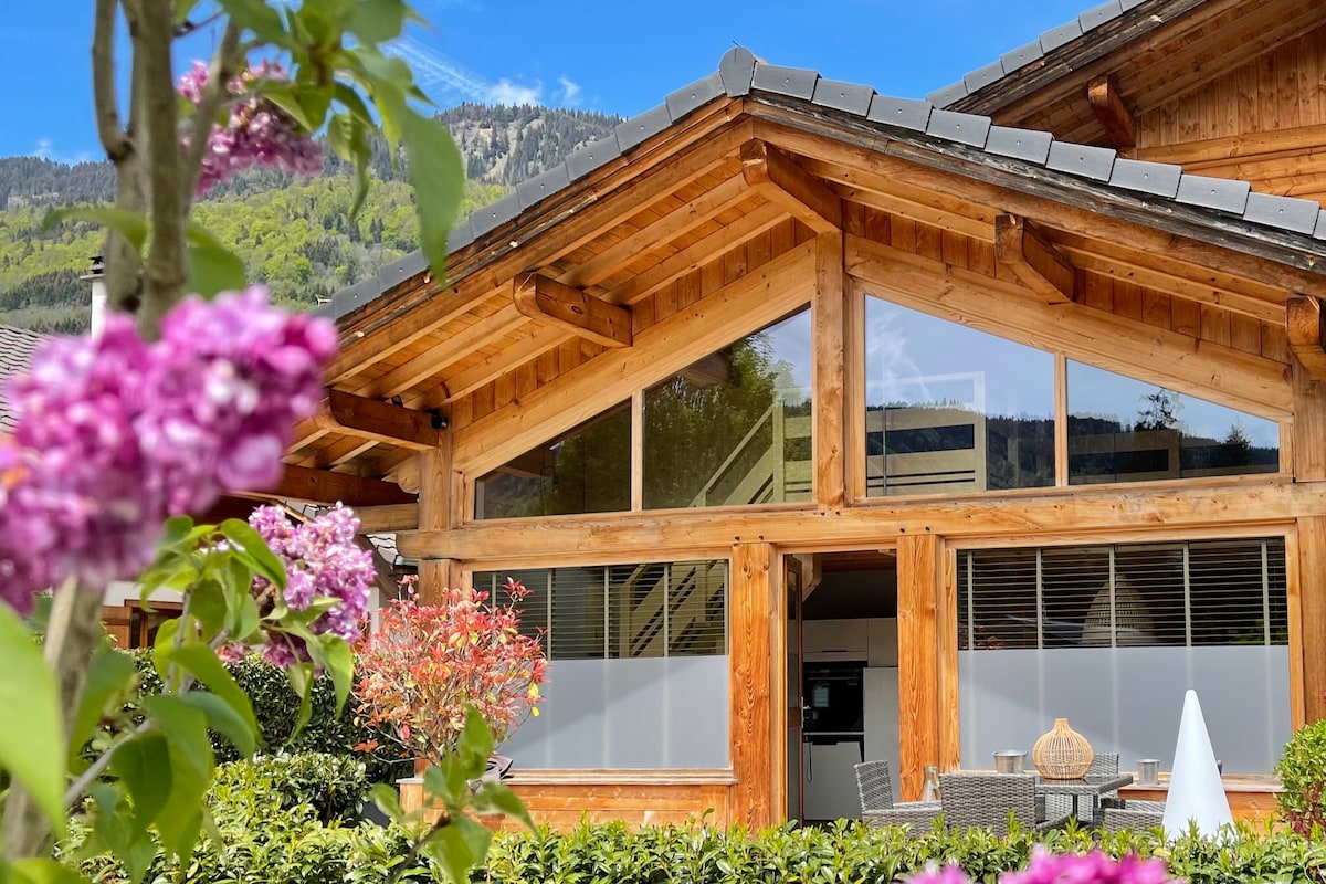 Très jolie duplex de 35 m2 récemment refait à neuf situé au cœur de la vallée du giffre à quelques minutes de la base de loisir du lac bleu. (Accrobranche, pump track, jeux gonflables, tennis, city.) Vous profiterez de magnifiques levés et couchés de soleil sur les montagnes alentours culminant entre 2000 et 3000 m d' altitude. Vous serez seulement à 45 minutes de Genève, Chamonix et 1h d'Annecy et evian entre lacs et montagnes. Draps et serviettes fournis pour des séjours supérieurs à 2 nuits