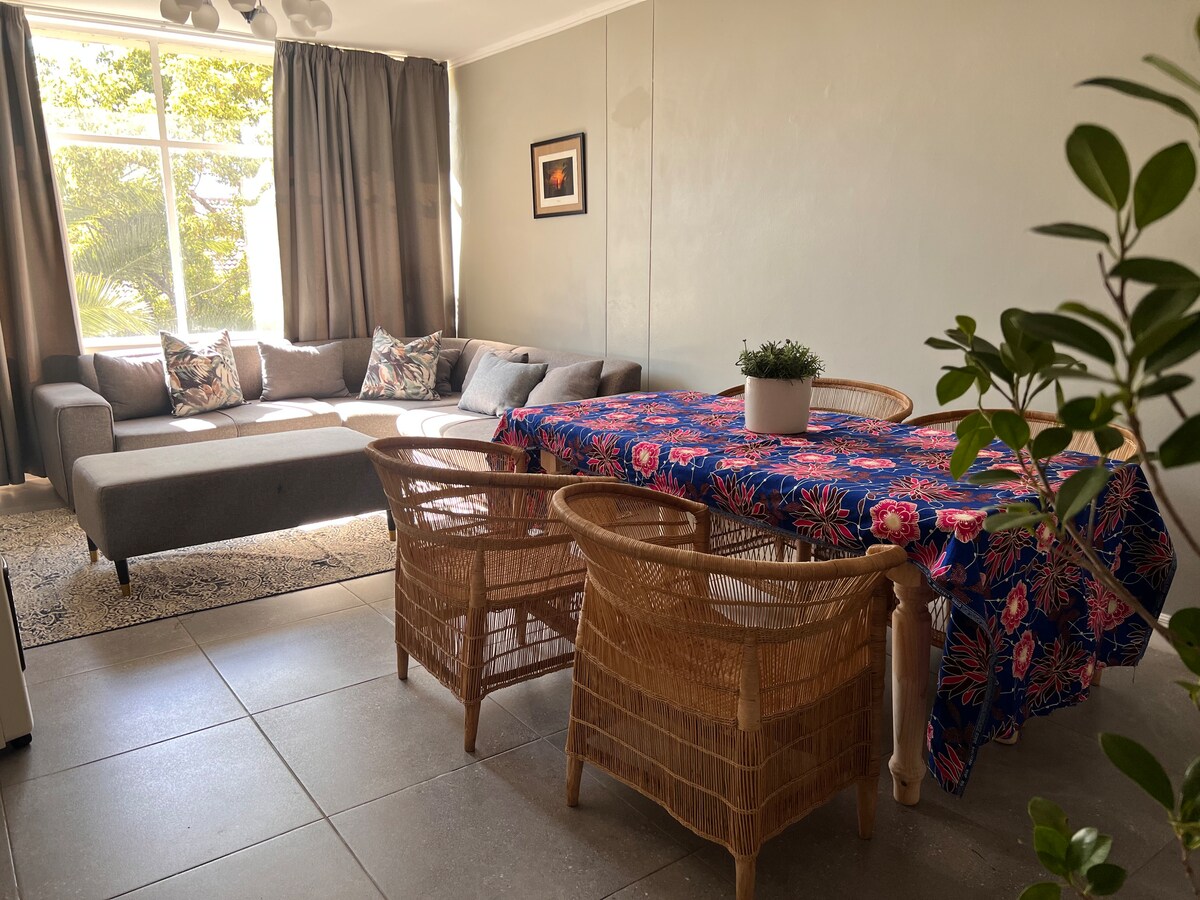 Spacieux appartement d'une chambre dans un domaine sécurisé. Convient pour 2 personnes. Entièrement meublé et équipé avec des éléments de cuisine essentiels pour l'auto-restauration. À l'intérieur du domaine, nous avons une piscine, un spa bien-être, un espace Braai, des services de blanchisserie et un restaurant qui livre à votre porte. Le domaine est à 170 m de la station-service Sasol où il y a deux restaurants de restauration rapide, des guichets automatiques ABSA et FNB. 1 douche 1 lit Queen Size Wi-Fi UPS Il est interdit de fumer à l'intérieur de l'appartement, de faire du bruit excessif et d'organiser des fêtes. Wi-Fi non plafonné et télévision (Netflix)