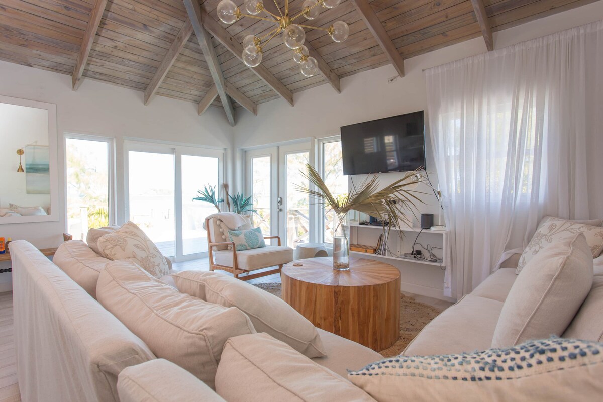 Détendez-vous dans ce chalet calme et élégant nouvellement construit, niché dans le village tranquille de Hartswell Exuma, avec une vue spectaculaire sur l'océan depuis chaque chambre. Découvrez la beauté de la nature et profitez du lever et du coucher du soleil tout en vous relaxant sur le porche enveloppant du chalet. Nous sommes situés à 30 minutes de l'aéroport, à 20 minutes de Georgetown et à 5 minutes de Little Exuma où vous trouverez la magnifique plage du Tropique du Cancer.