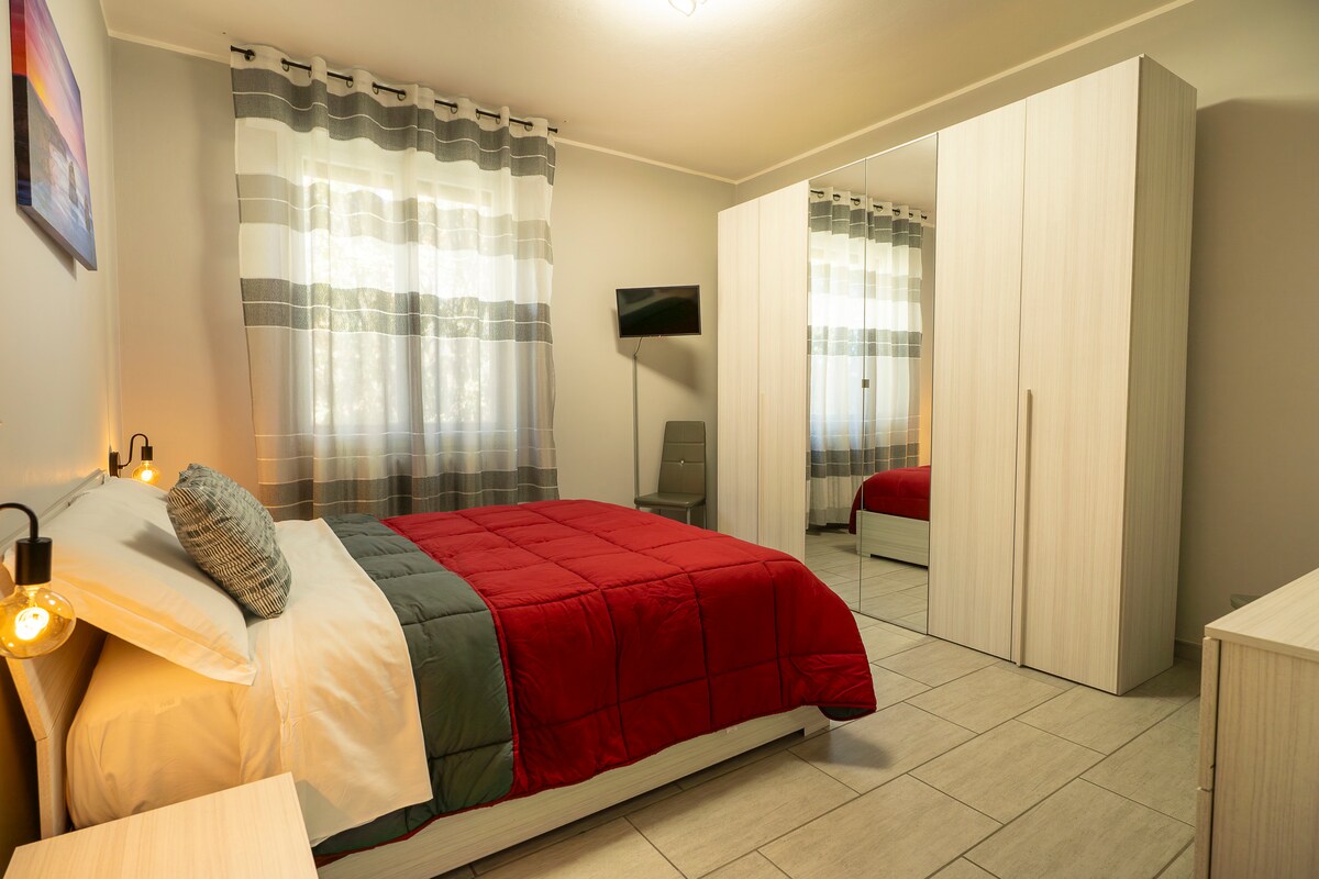 Grand appartement avec grand jardin équipé. 2 chambres avec possibilité d'accueillir plus de personnes, salle de bain, salon, cuisine complète (four, cuisinière, micro-ondes, machine à café,), lave-linge. Équipé de télévision 50", sèche-cheveux, WI-fi. Maison composée de 2 appartements, rez-de-chaussée disponible, au premier étage un jeune couple... quartier calme de campagne à 500 mètres du centre et des lieux d'intérêt. Excellente trattoria avec cuisine typique à 50 mètres. Parking intérieur et portail