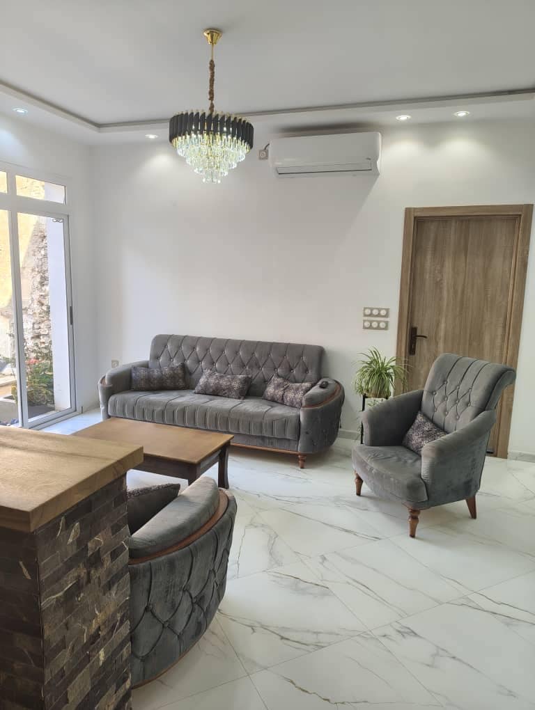 Nous sommes heureux de mettre à votre disposition un joli appartement moderne type F3 situé au 2eme étage d'une Villa neuve à kharrouba, Mostaganem. compose d'une cuisine ouverte sur hall spacieux, 02 chambre ,grand salon et terrasse avec une vue dégagée sur mer. équipé de toutes les commodités telles que chauffage central, climatisation, WiFi ainsi d'une place de stationnement au garage. La villa accessible ; 5mn parc d'attraction, 7mn la plage de sidi Mejdoub et 13mn du centre ville
