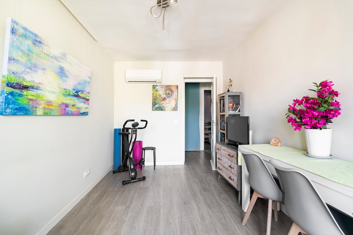 Appartement au niveau de la rue. Idéal pour les voyages d'affaires, les voyages d'études, les séjours médicaux, etc. Avec plaque vitrocéramique, réfrigérateur, lave-linge/sèche-linge, lave-vaisselle, pompe à chaleur/froid, micro-ondes, Nespresso, ustensiles de cuisine complets, bouilloire pour infusions, lit double, canapé-lit 190x150, smart TV, Wi-Fi, alarme, ligne de métro directe pour Sol (15"), grande salle de bain, douche à effet pluie, distributeurs automatiques de gel hydroalcoolique.