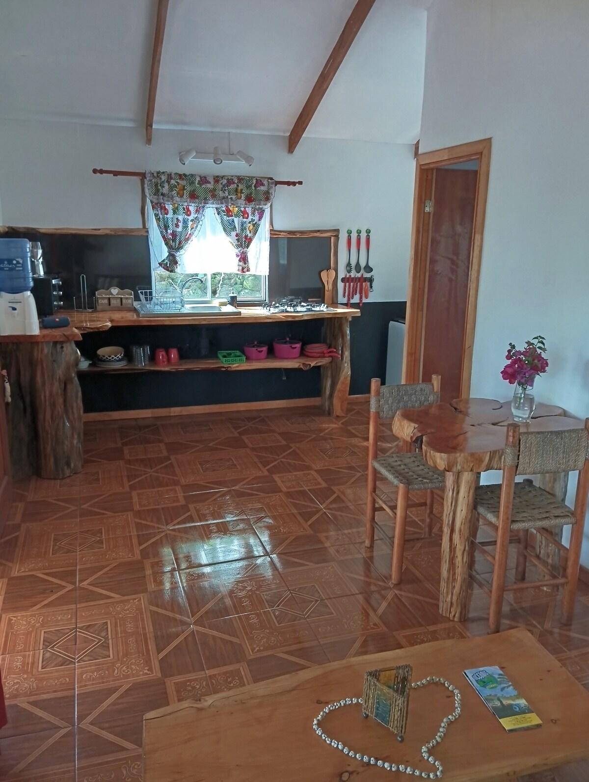 Chalet entièrement équipé. Deux chambres, cuisine et salle de bain privée, grande terrasse avec vue sur la mer. Excellent emplacement, grands espaces et jardins. Belle vue au coucher du soleil. Nous disposons également d'un service de visites guidées et de transfert à la plage d'Anakena.