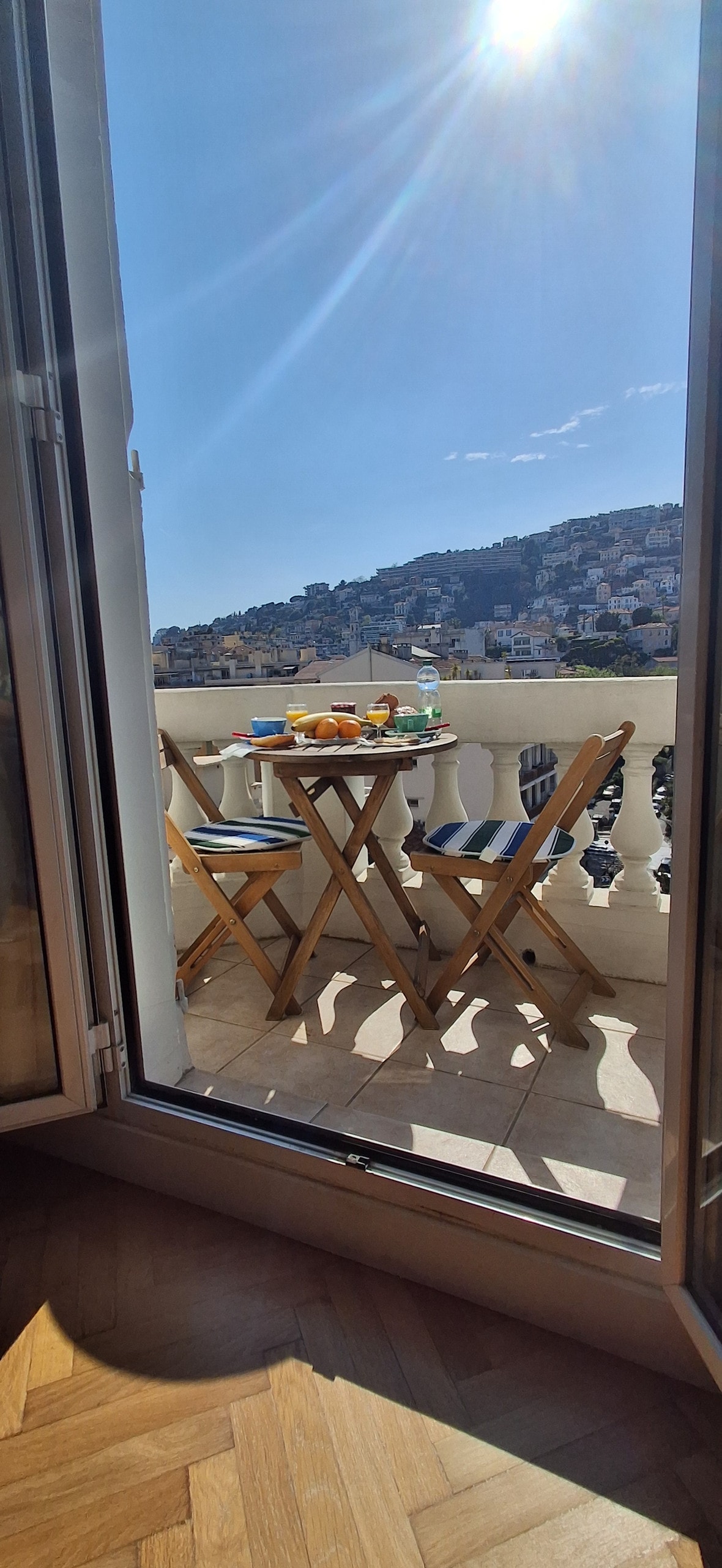 un charmant studio de 25 mètres carrés en superbe état climatisé baigné de soleil. Très calme il y a un balcon et une superbe vue sans vis-à-vis ou vous pourrez vous détendre. Les plages de la célèbre Promenade des Anglais sont à 20 minutes en tramway. Vous trouverez à votre arrivée 2 bouteilles d'eau fraîche ainsi qu'un paquet de ships. il y aura aussi quelques capsules de café et des sachets de thé. Désinfection de la literie après chaque départ.