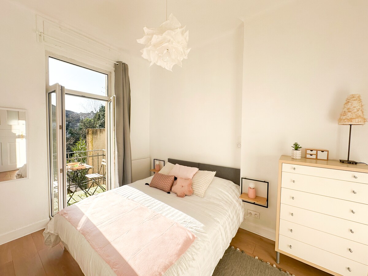 Appartement d'une surface de 80 m2 situé dans une petite copropriété de 9 appartements. - 1 chambre avec literie de qualité pour deux personnes. - 1 salle d'eau avec douche et miroir connecté Bluetooth. - 1 Cuisine équipée. - 1 emplacement de parking privé. - 1 terrasse avec vue sur parc joliment arboré - La consommation de tabac est préférable sur la terrasse. - Vous ne pouvez pas dépasser le nombre de personnes indiqué au moment de la réservation. Connexion Internet à la Fibre haut débit.