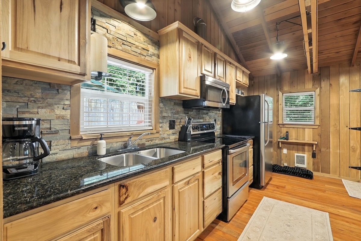 The Bear's Den, studio avec cuisine et étang/ruisseau