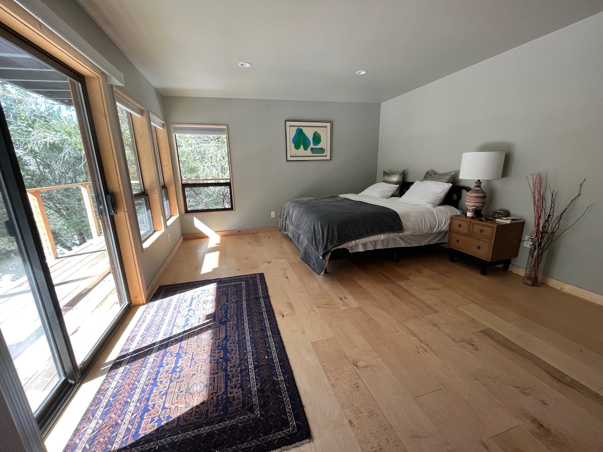 Private studio with private entrance,private full bath,private full kitchen with utensils and all cooking amenities.(cooking oil,seasonings etc.) Immersed in the Mt Baldy Wilderness: an eco-sensitive space, looking out at the San Antonio Creek, breath-taking views alongside oak, cedar and pine trees.