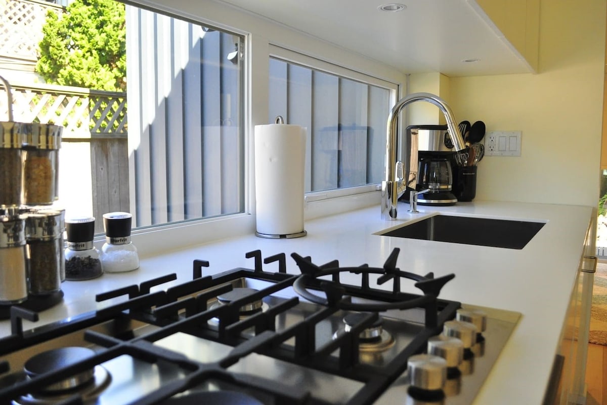 Notre belle maison neuve, lumineuse et moderne, peut accueillir jusqu'à 4 personnes. Elle est située au centre de Vancouver, à proximité du SkyTrain et à seulement 2 pâtés de maisons de la rue Main Street branchée qui a des tonnes de grands restaurants et magasins, et à l'ouest un centre communautaire ! C'est une retraite de 600 pieds carrés dans un quartier calme, parfait pour les adultes professionnels et les familles. Le salon/salle à manger ouvert a de hauts plafonds, une télévision connectée, une connexion Wi-Fi gratuite, Netflix et une table à manger extensible avec des sièges de banquet.