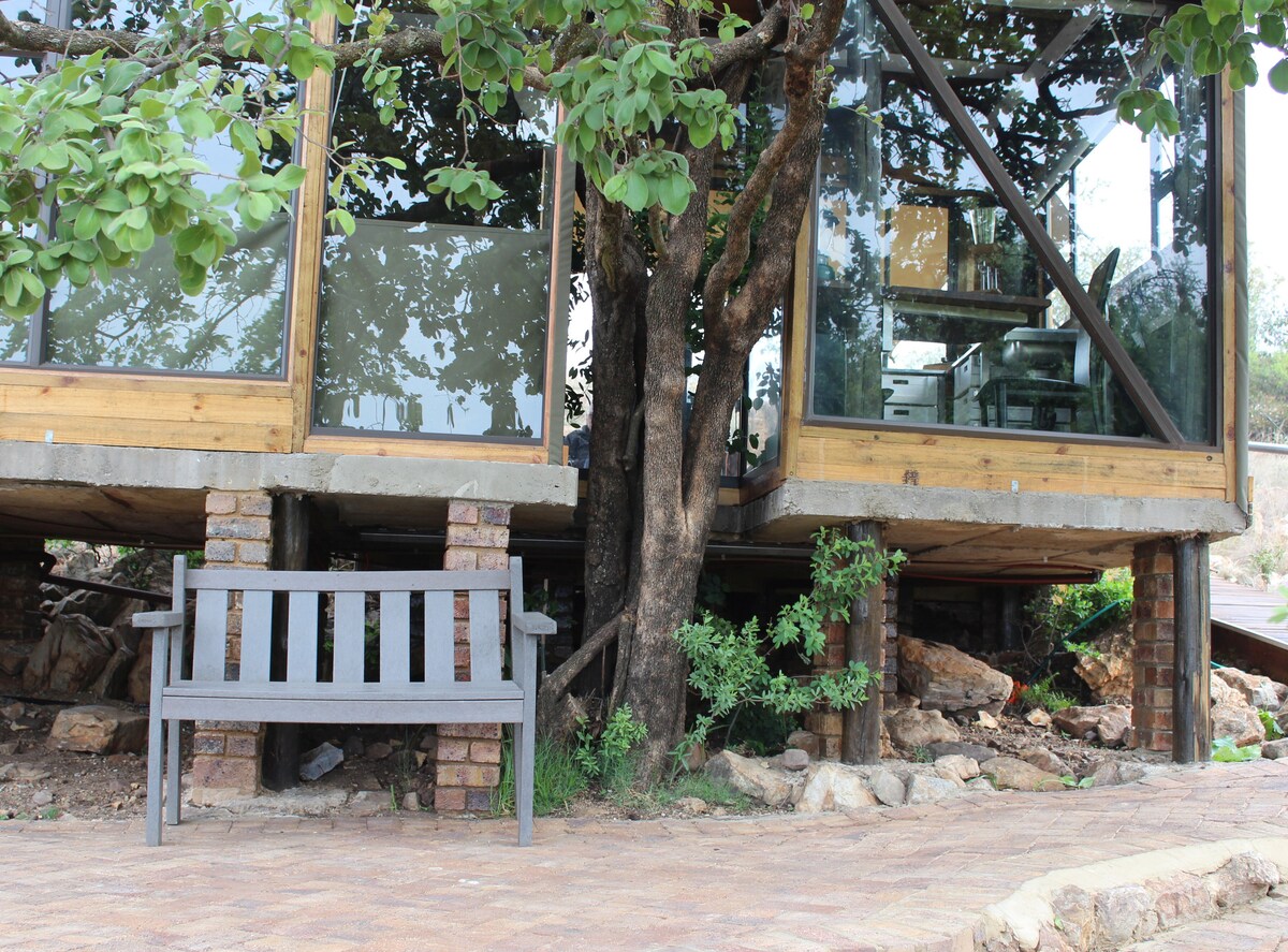 Birdsong est une maison privée, indépendante et alimentée par l'énergie solaire dans une réserve naturelle jouxtant le parc national Kruger. Détendez-vous dans le salon extérieur du rez-de-chaussée avec piscine chauffée pendant que les zèbres, les koudous et bien d'autres s'arrêtent pour vous rendre visite. Admirez le coucher de soleil depuis le hamac sur le patio supérieur. Faites de l'exercice dans l'espace gymnastique. Et si vous ne pouvez tout simplement pas vous éloigner du travail, il y a une grande table à l'étage avec un bel arrière-plan vidéo ! Birdsong est à seulement 15 minutes de la porte du pont des crocodiles de Kruger.