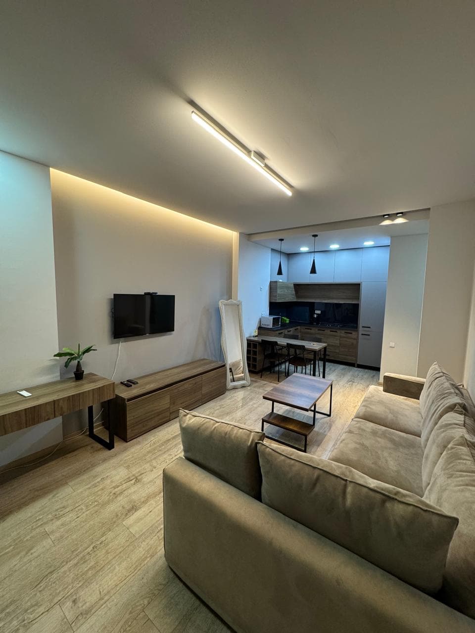 Newly renovated modern and comfortable apartment located in 'Nadzaladevi' district (Tornike Eristavi Street), near the 'Didube metro station and Kikvidze' park ('Veterans Square '). equipped with all necessary amenities: central heating, free WIFI and TV, kitchen, fridge, microwave, stove, shower, toilet, hygiene items, hair dryer, towels, bedding. A separate bedroom with a double-sized bed to ensure good rest and sleep. wardrobe and scales. Hope you will have a good time in Tbilisi