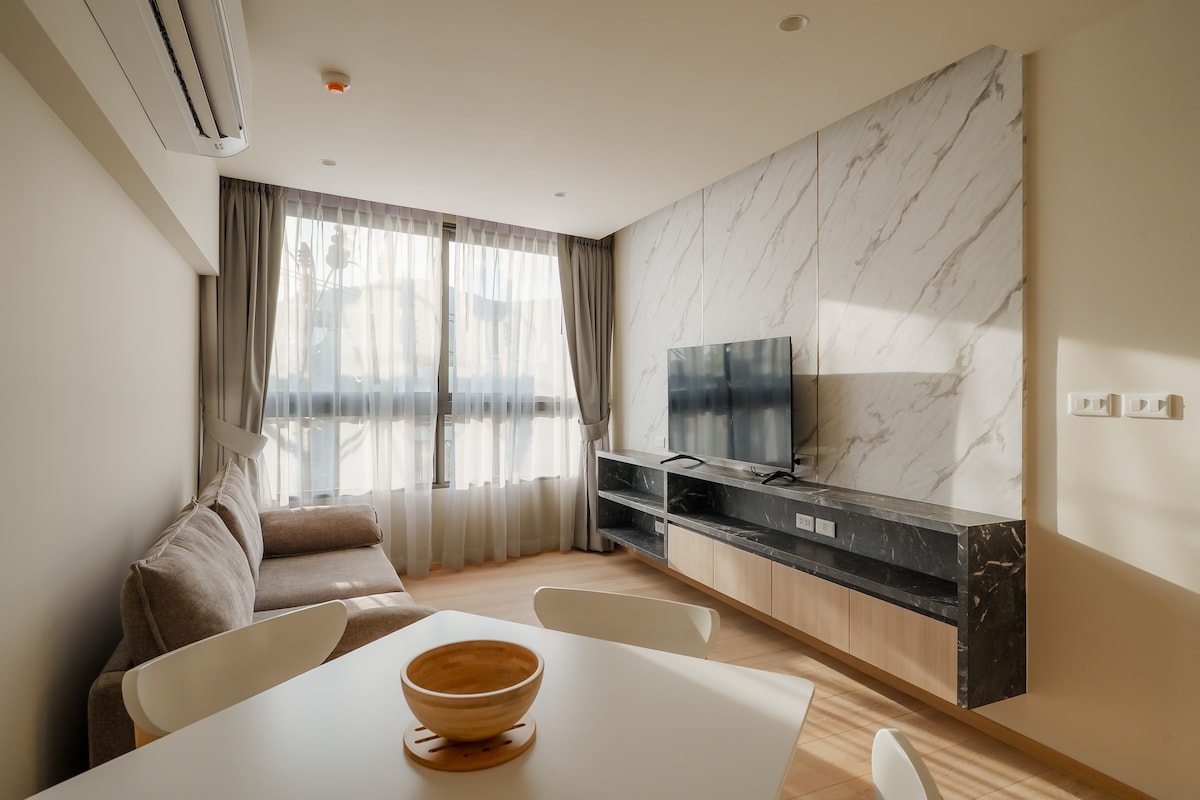 Bienvenue dans votre séjour de détente au cœur de Phuket ! Ce nouveau et confortable appartement d'une chambre à Phyll Phuket est parfait pour les couples ou les voyageurs en solo. Profitez d'un balcon privé, d'une cuisine équipée et d'équipements de style complexe hôtelier, notamment une piscine, une salle de sport et un salon de coworking. Situé à seulement 5 minutes à pied du centre de Phuket, et à seulement 10–15 minutes en voiture de la vieille ville de Phuket et de la plage de Patong, c'est le pied à terre idéal pour des vacances courtes et des séjours longs. 🏝