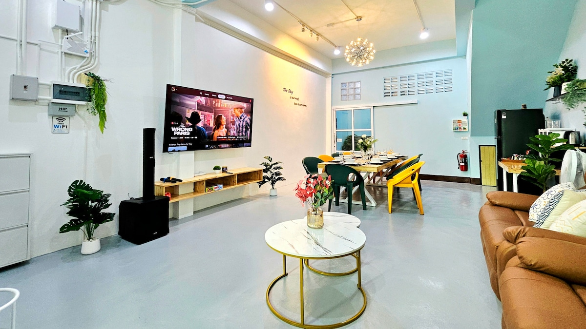Fermez les yeux et imaginez un endroit où le calme se lave au-dessus de vous. C'est <b>HUG HOME HATYAI</b>. <i>Plus qu'une maison, c'est un havre de paix conçu avec amour</i>. Chaque détail murmure <b>« Bienvenue à la maison. »</b> Nous avons choisi des couleurs apaisantes et un mobilier confortable, parfaits pour échapper au quotidien. Avec de la place pour 8 personnes, rassemblez vos proches pour une aventure de Hat Yai remplie de rires et de souvenirs partagés dans un logement conçu pour la convivialité.