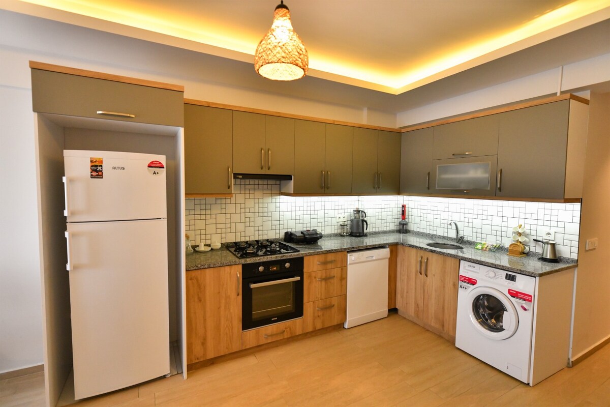 Çetkin Suites est entrée en service en 2021 et nos appartements en suite se composent de 2+1 et 1+1 et tous les articles et bâtiments sont neufs. Chaque chambre de notre appartement dispose de la climatisation, d'un réfrigérateur, d'un lave-linge, d'un lave-vaisselle, d'une télévision, d'un vestiaire et de tout l'équipement de cuisine et de suffisamment de draps pour le nombre de personnes. Le bâtiment dispose d'un ascenseur, d'un diaphone, d'un distributeur automatique de porte principale, d'une réception et d'un système d'obturation dans nos appartements.