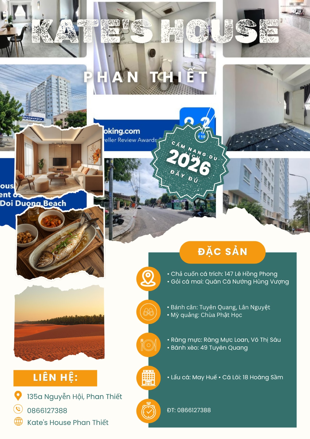 Maison de Kate à Phan Thiêt – Appartement de 65 m² avec 2 chambres – À 7 min de la plage • Lumineux et spacieux – Wi-Fi rapide • Arrivée anticipée • Calme et propre, confortable pour un séjour en famille, en couple, en télétravail ou en groupe. Parking gratuit, équipements complets et wifi puissant - parfait pour les séjours ou le travail