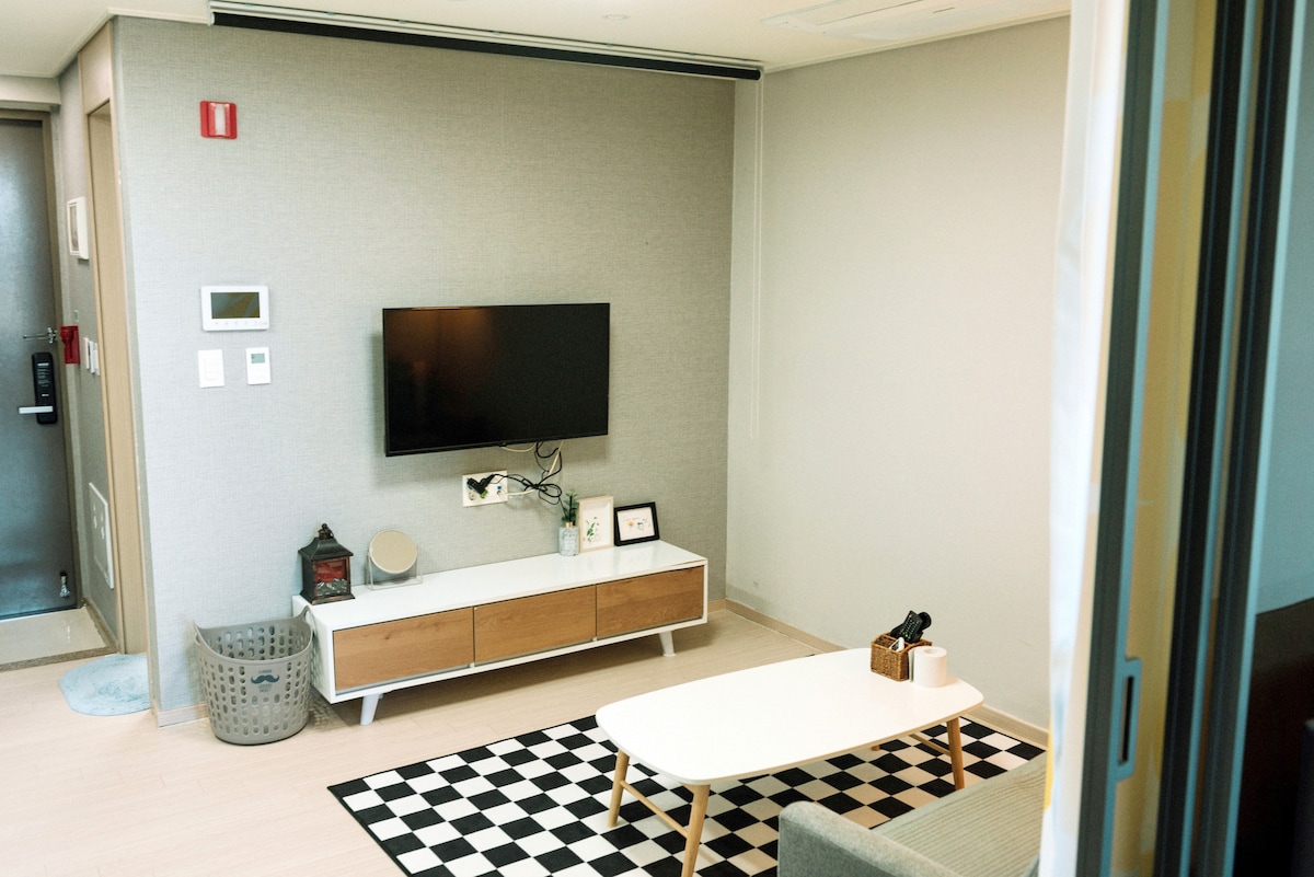 Nous accueillons les voyageurs à cœur ouvert.🌼 « Voyager nous garde seuls dans le présent, nous libère de nos soucis quotidiens, de nos regrets et de nos imbéciles. « Young-ha Kim_Why travel📚 Il s'agit d'un logement soigné et bien rangé à Cheongok-dong (centre-ville), Donghae-si. Il est géré par un couple vivant à Donghae City. Si vous êtes à la recherche d'un logement propre, veuillez réserver. Nous fournissons un hébergement confortable pour les familles, les couples, les amis et les voyageurs en solo. Si vous avez déjà une réservation à la date souhaitée, veuillez cliquer sur le profil et consulter les autres chambres que je gère ^ ^ Il y a des chambres avec des intérieurs et des structures différents dans le même bâtiment😊