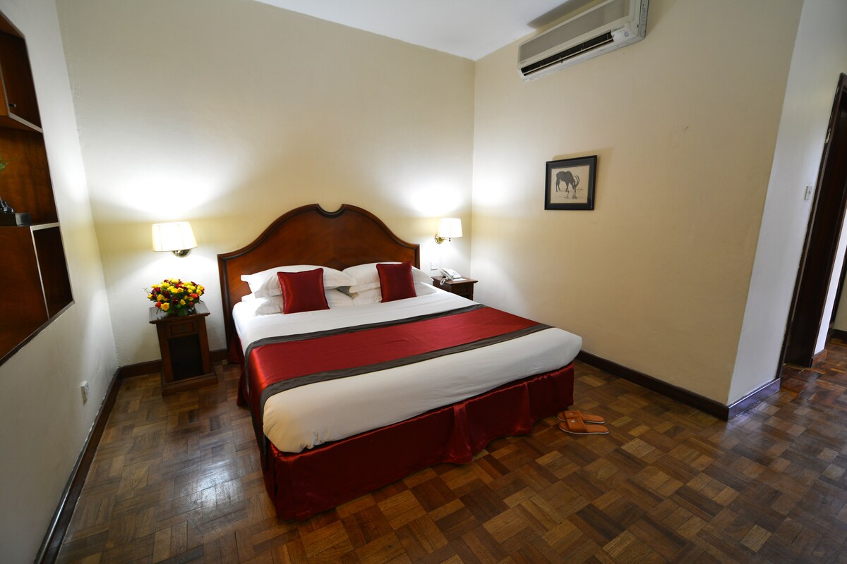 Standard room in one of Kampala's most notable hotels. Enjoy secure hotel facilities with full buffet breakfast, pool, fast wifi, unlimited Netflix, and an excellent customer service team ready to host you! Voted one of the best locations in town within walking distance to restaurants, shopping, and night life. On-premises Asian Fusion Restaurants (#2 on Trip Adviser), beautiful gardens and great ambiance whether for work or travel!