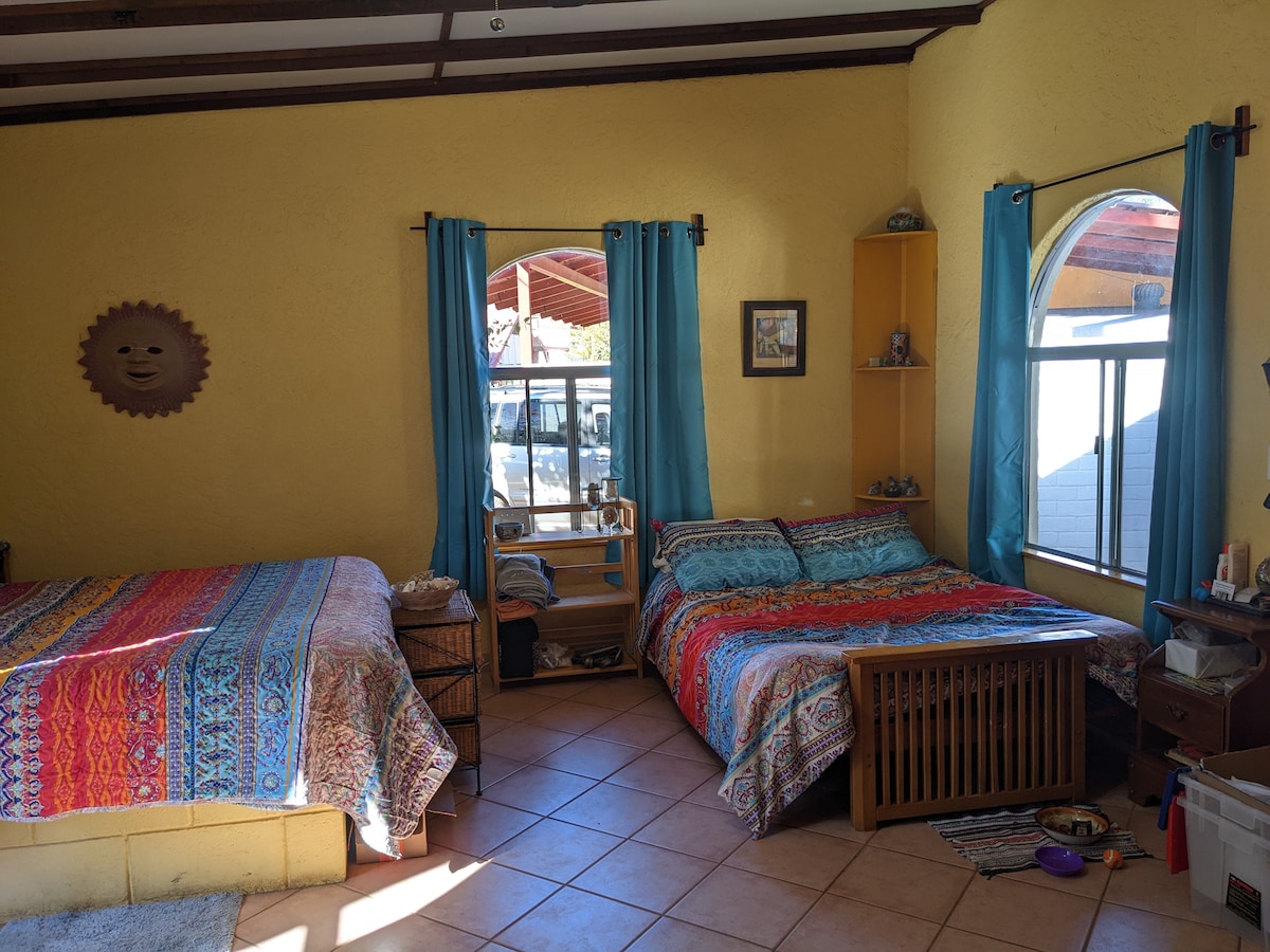 Desert Haus Studio est un loft, confortable avec tout ce que j'aime avoir à portée de main lors de mes voyages. Il dispose de deux lits Queen, peut accueillir 4 personnes confortablement, jusqu'à 5 personnes peuvent être hébergées si cela ne vous dérange pas de partager l'espace, au rez-de-chaussée il y a un futon. Il dispose d'une cuisine et d'une salle de bain complète. L'accès est autonome et le stationnement est grand et sécurisé. Il est à 2 km du boulevard principal, qui est le quartier central. Il est dans un quartier sûr et très calme.