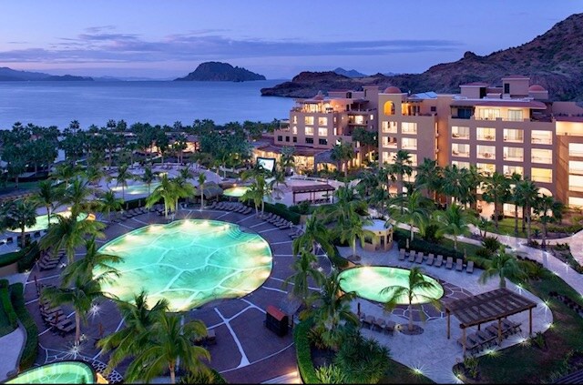 This oceanfront resort is set in a spectacular setting with easy access to the beach or a relaxing day by any one the beautiful pools. You can golf, swim, fish or go boating or kayaking. The resort is built around a preserve located on the Sea of Cortez. The water is crystal clear. There are three restaurants restaurants to accommodate guests. A full service spa as well. You can spend all of your time at the resort or you can take a shuttle to town, which is about 20 minutes away.