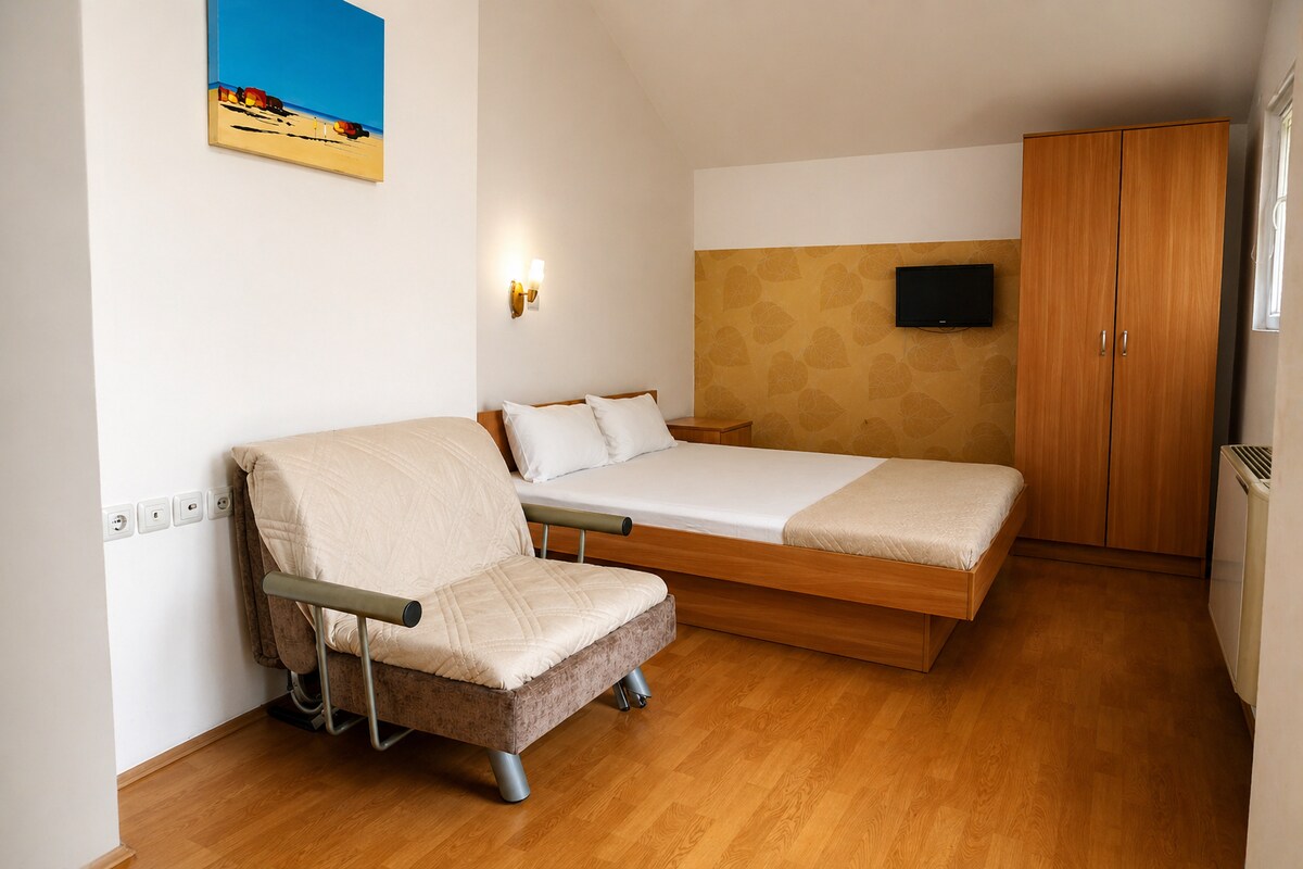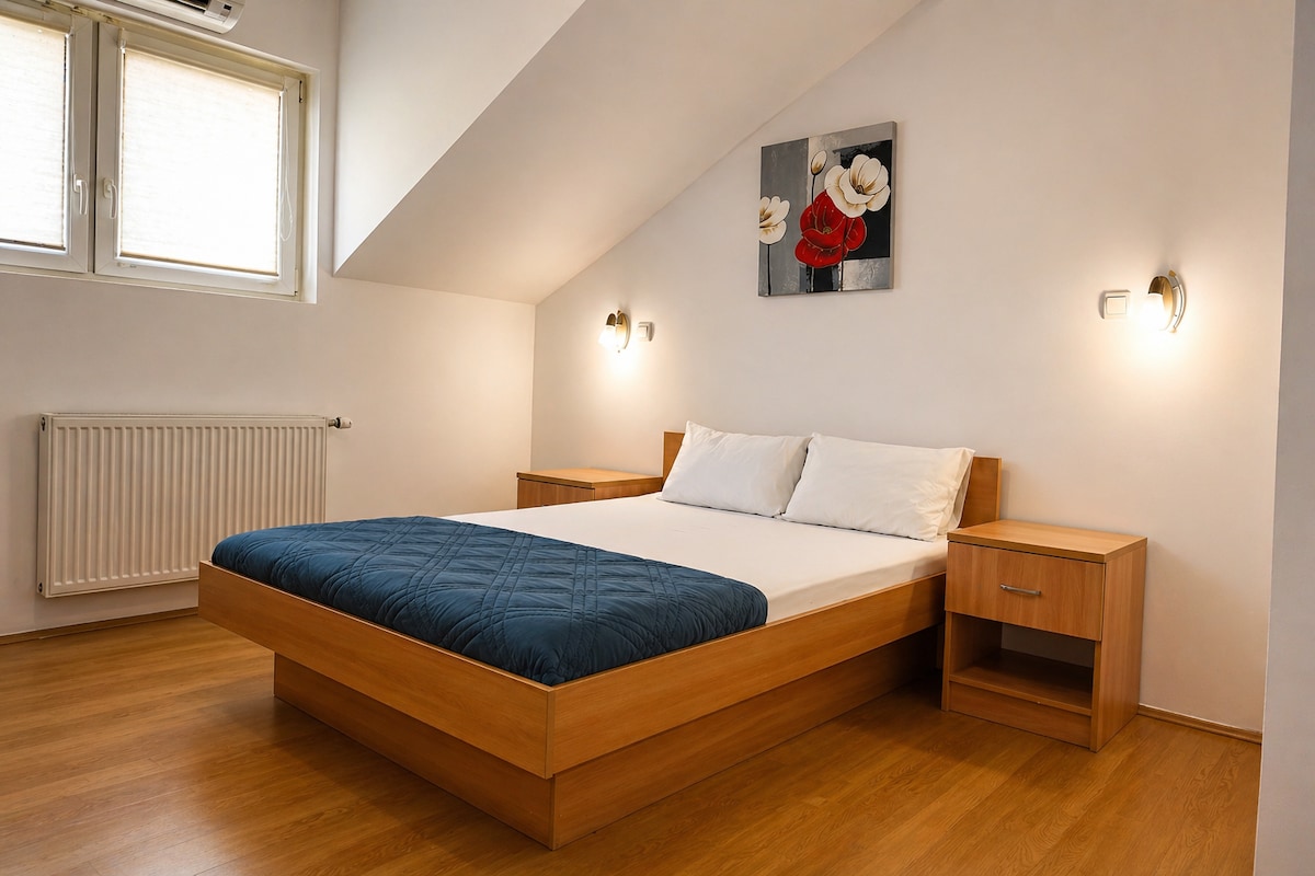 Nouvel appartement confortable de 50 m2 situé à Petrovec. Près de l'aéroport de Skopje, à proximité de l'autoroute en direction de la Grèce. Il y a une chambre avec un lit double et un salon avec un canapé-lit et une cuisine entièrement équipée. Des shampooings pour le bain et la douche, des serviettes et des draps sont également disponibles. Au rez-de-chaussée de l'immeuble se trouve un supermarché. Autour de l'appartement, vous trouverez de nombreux fast-foods, restaurants, hôpital, pharmacie, distributeur automatique de billets et arrêt de bus devant l'appartement.