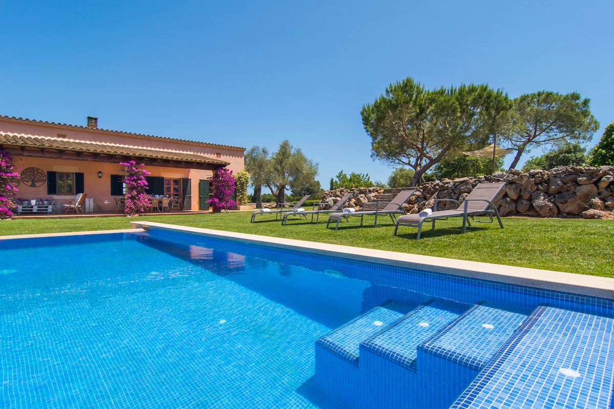 Bienvenue dans la perle de la Méditerranée, Majorque ! Ca Na Eva est une villa entre Muro et Can Picafort. Proche de la célèbre plage de Play de Muro. La villa dispose d'un design accueillant et confortable, ici vous pourrez profiter de la campagne et vous détendre dans la nature toute l'année. Il y a la climatisation dans toutes les chambres. La maison dispose de plusieurs terrasses avec des coins repas au bord de la piscine. Il y a beaucoup à découvrir en voiture, en scooter ou à vélo. Endroit fantastique pour faire de la randonnée, jouer au golf, faire de l'équitation ou louer un bateau.