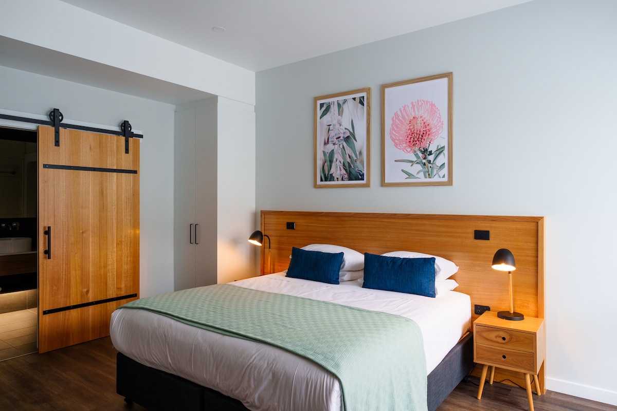 Welcome to Bendigo Lodges! Our spacious Lodge One offers a tranquil retreat in the heart of Bendigo, Victoria. With 1 bedroom, 1 bathroom, and a fully equipped kitchen, it's perfect for couples or small groups. Enjoy the large native courtyard. Free private parking and WiFi are provided. Explore Bendigo's rich history and culture, from the Central Deborah Gold Mine to the Sacred Heart Cathedral. For additional guests, a queen size murphy bed is available for an extra charge. Book now!