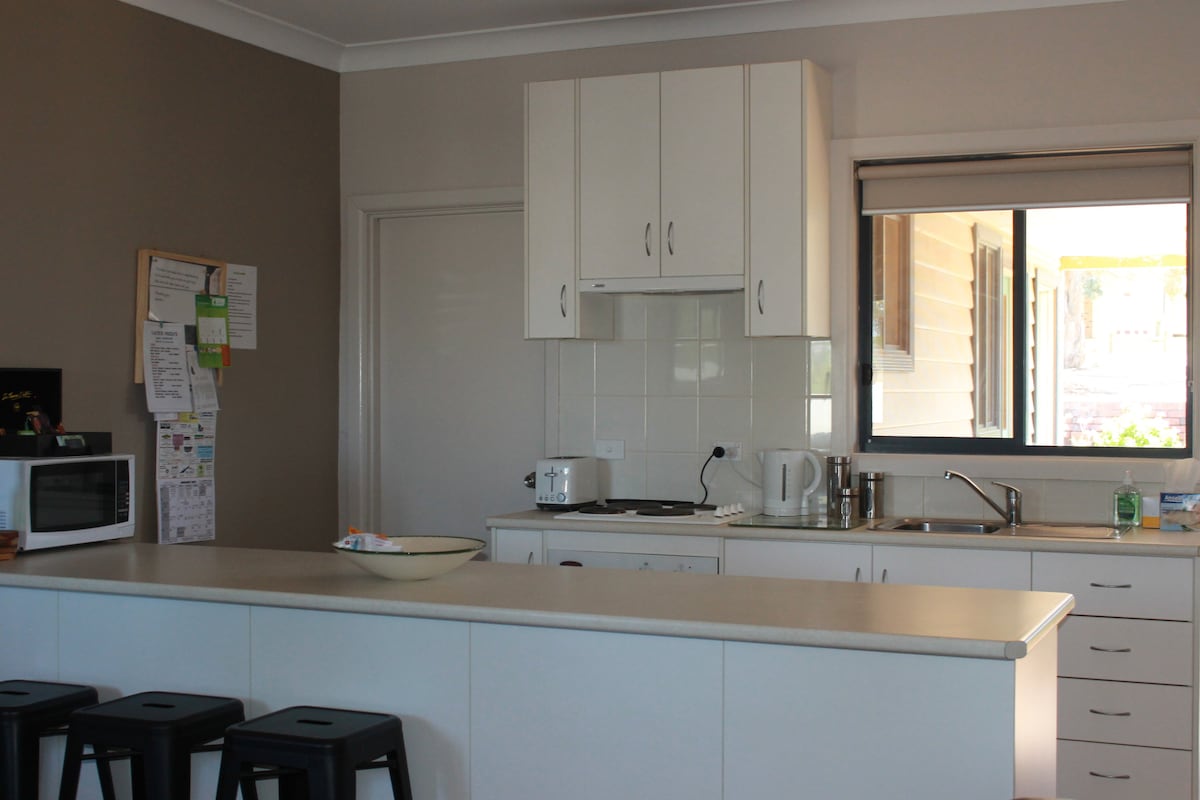 Un logement petit et humble, idéal pour une escapade de week-end pour rendre visite à des amis et à la famille, ou pour passer par une petite ville de campagne. À 50 mètres à pied du supermarché et de la rue principale. Juste en bas de la route du pub et du club communautaire. Dans un endroit calme et privé, avec peu de bruit ou de circulation. À cinq minutes à pied de la piscine Ouyen ainsi que du club de tennis.