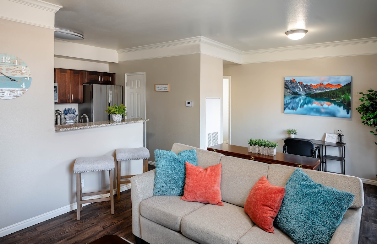 Profitez d'une expérience moderne et confortable dans cet appartement situé au centre-ville de Salt Lake, à seulement 7 minutes en voiture de l'aéroport, à 10 minutes à pied du Delta Center et à 4 minutes en voiture du centre de convention Salt Palace ! Cette ville regorge de stations de ski primées, de bars, de restaurants, de boutiques et d'un voisin de belles montagnes, de lacs et d'autres monuments historiques. Aventurez facilement à travers Salt Lake depuis cet emplacement privilégié ! En savoir plus ci-dessous :