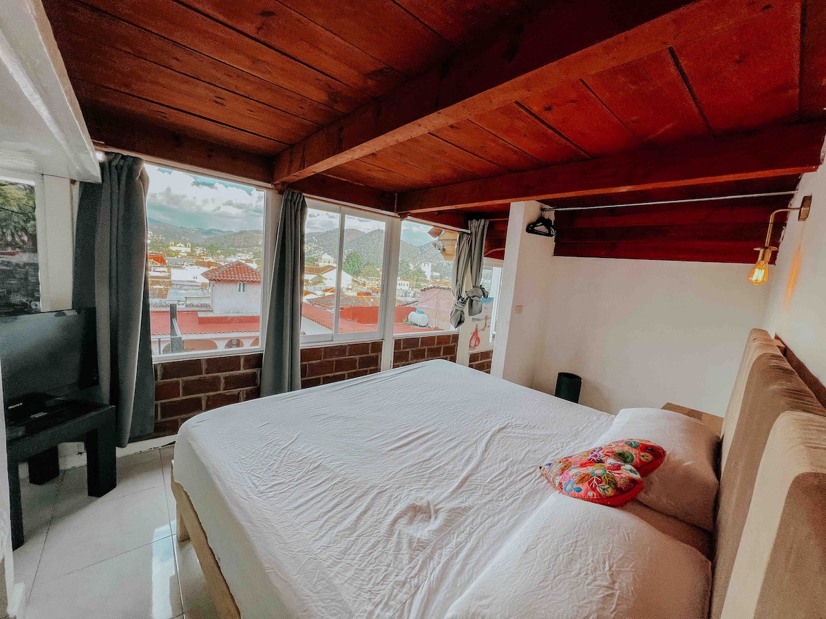 Appartement confortable et lumineux avec cheminée, idéal pour profiter et découvrir San Cristóbal de las Casas. Situé dans un quartier traditionnel du centre, avec un accès facile à tout. Lucarne et grandes fenêtres qui remplissent l'espace de lumière et de chaleur. Il dispose d'une cuisine équipée, d'un lave-linge/sèche-linge, d'un bureau et d'une connexion Internet rapide, parfait pour travailler ou se reposer dans un cadre confortable et authentique.