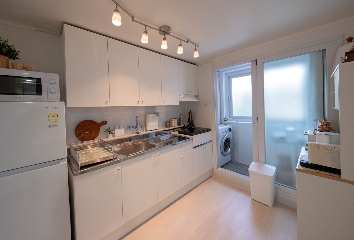 Rénové en blanc. À 3 min de la gare de Séoul. Nourriture gratuite