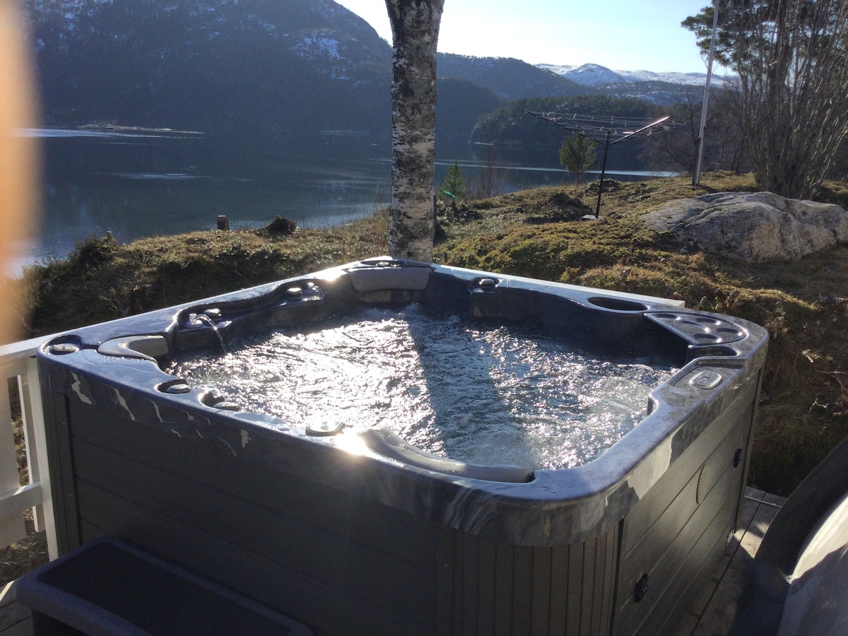 Koselig feriehus i nærheten av sjø og fjell.