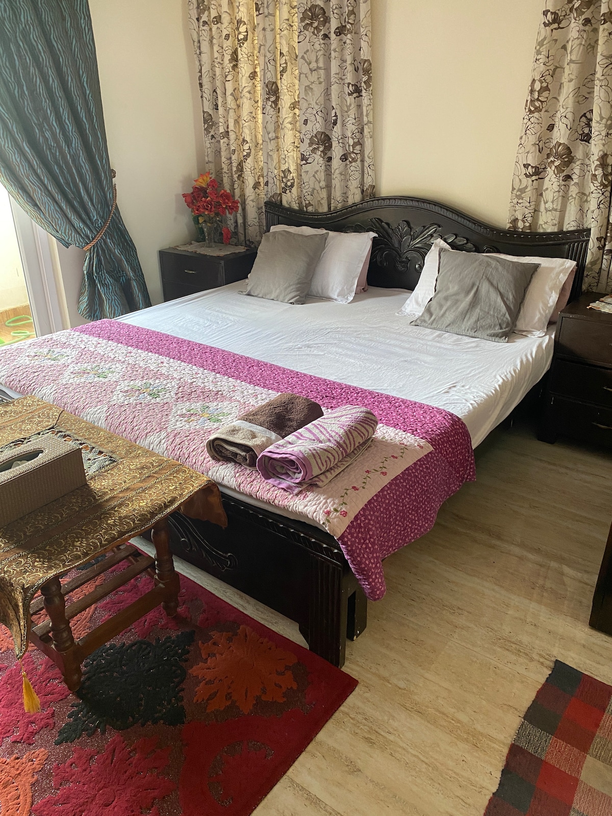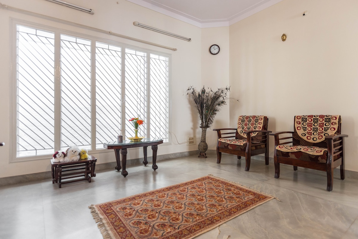 Maison indépendante, entièrement meublée, impeccable, conforme au Vastu, spacieuse de 1000 pieds carrés (2bhk) au 1er étage d'un bâtiment autonome à RT Nagar. Proximité de Manyata Tech Park, Orion Mall, IISC. Des sols en marbre élégants, des intérieurs de bon goût et un sentiment de calme en font un havre de paix zen pour votre séjour ! Propriétaires non intrusifs, mais serviables. Miam, des repas faits maison en option. Idéal pour les couples, les familles, les voyages d'affaires et les étudiants. Réductions pour les séjours longue durée uniquement. Soyez assuré d'un séjour agréable lors de votre réservation !