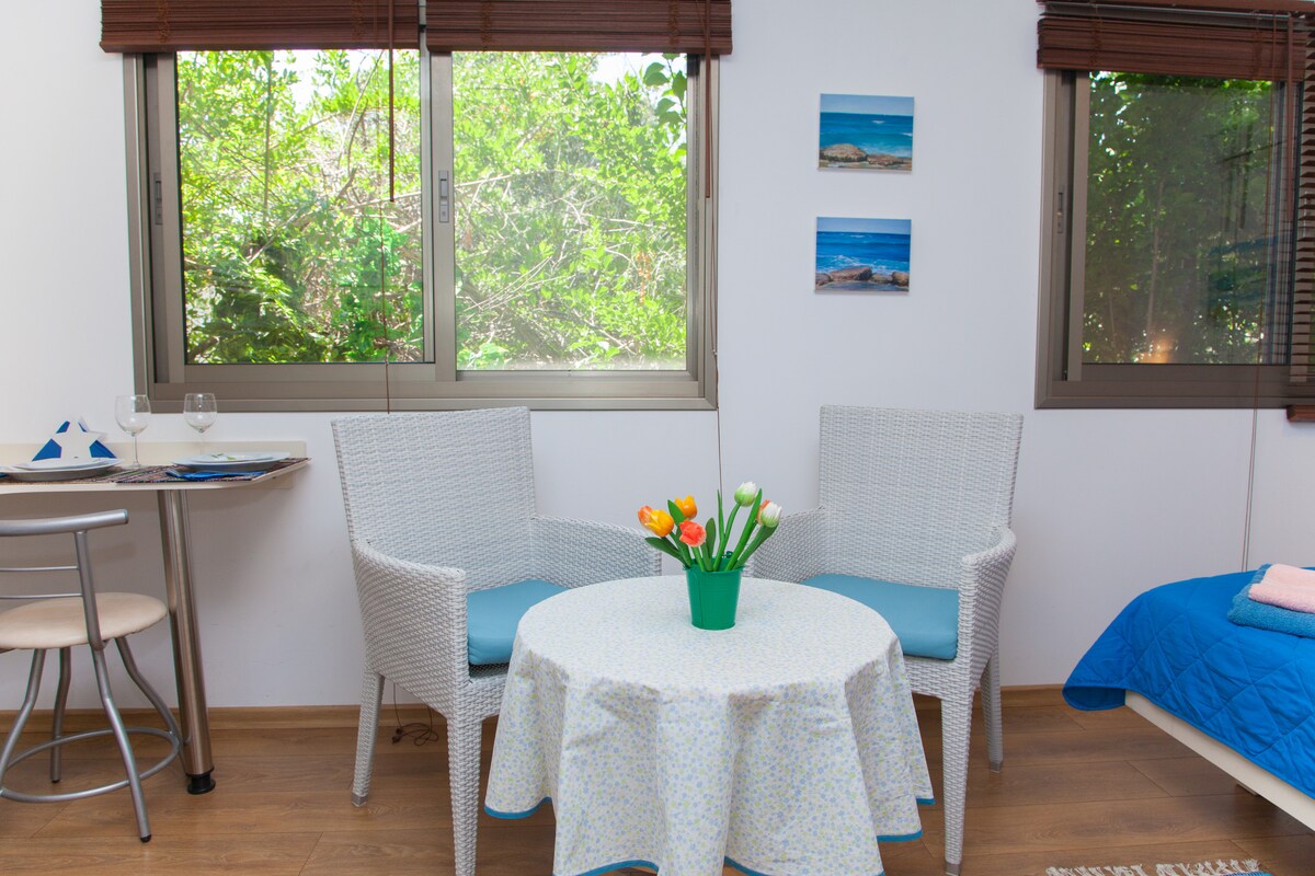 Nous vous invitons à séjourner dans notre nouvelle unité d'hôtes magnifiquement conçue, à quelques pas de la magnifique plage de Shavei Zion. Cette retraite privée comprend une cuisine entièrement équipée, un salon confortable, une chambre confortable, une salle de bain moderne et un balcon spacieux avec un coin repas et un coin salon. Profitez d'une connexion Wi-Fi haut débit, de la télévision et des chaînes câblées. Départ tardif disponible (sous réserve de disponibilité). Parfait pour les couples et les jeunes familles (jusqu'à 4 personnes). Au plaisir de vous accueillir !