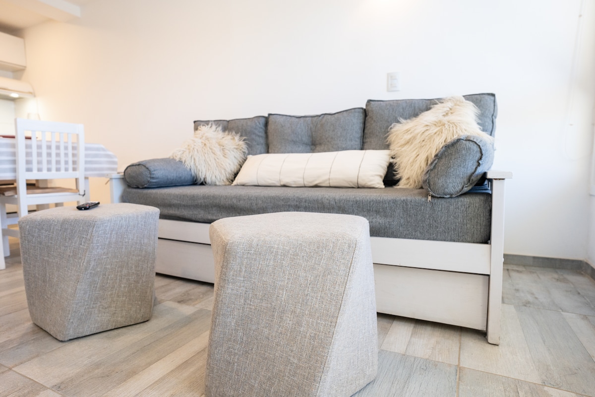 Depuis cet appartement central, vous pourrez profiter de tout ce que Bariloche offre. Elle est parfaite pour les couples ou les amis et peut accueillir jusqu'à 2 personnes. C'est un appartement confortable de 25 m² au décor moderne qui crée une atmosphère confortable. Vous pouvez y accéder directement depuis la rue. C'est un studio avec un lit double ou deux lits jumeaux, une cuisine intégrée et entièrement équipée, et une salle de bain avec douche et bidet. L'appartement a été rénové en janvier 2024.