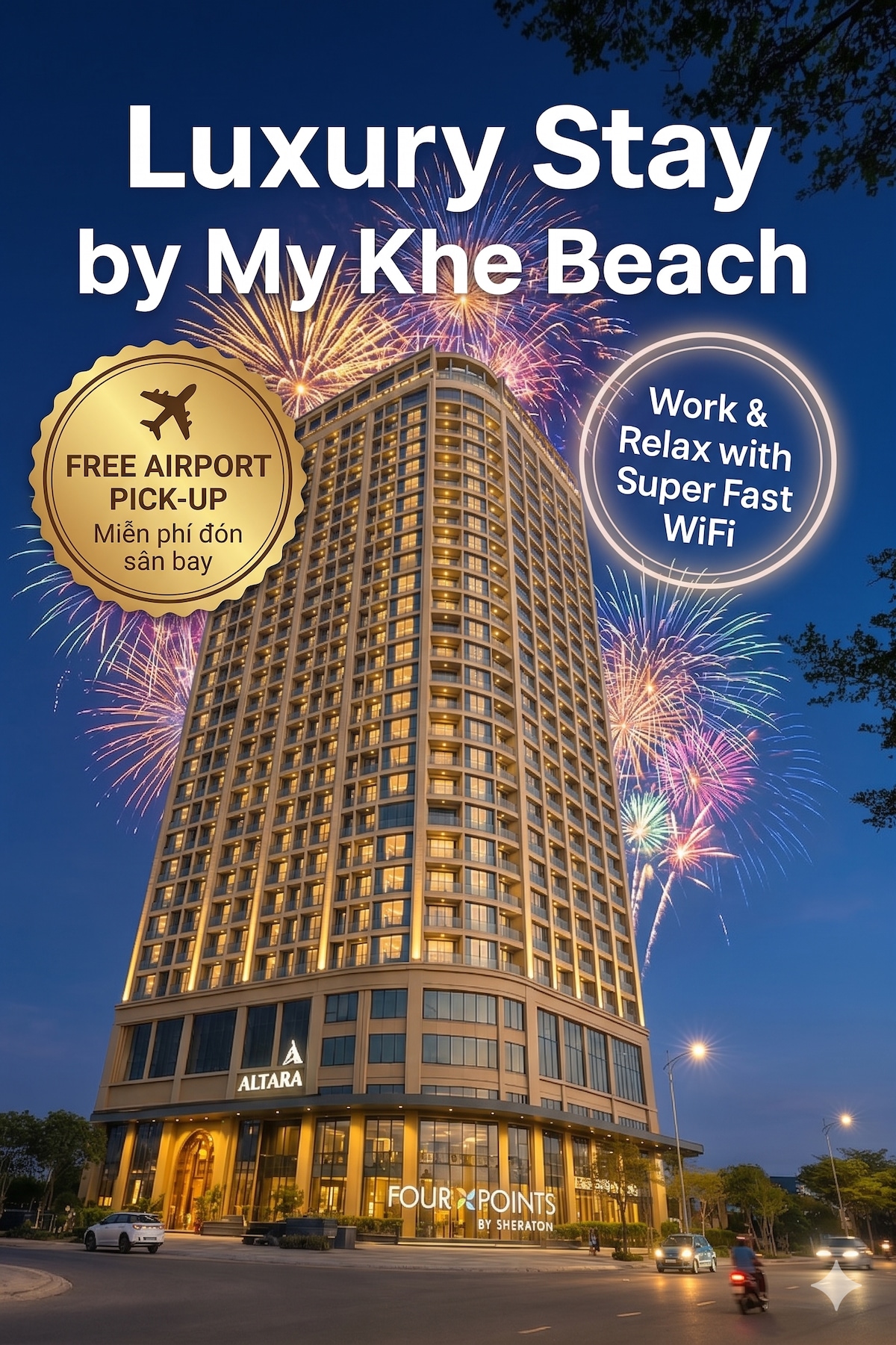 Bienvenue dans notre superbe studio sur la magnifique plage de My Khe, un espace confortable qui vous offre confort et commodité lorsque vous êtes loin de chez vous. Il est facile d'accéder à tous les services essentiels à partir de cet emplacement central et de profiter des installations d'un hôtel 4 étoiles telles qu'une piscine à débordement spectaculaire, une salle de sport et un spa (des frais s'appliquent). Comme il s'agit d'un appartement privé, vous ne vous enregistrerez pas à la réception de l'hôtel Alacarte, le gestionnaire de la chambre vous rejoindra dans le hall au 1er étage de l'immeuble et vous aidera à vous enregistrer.