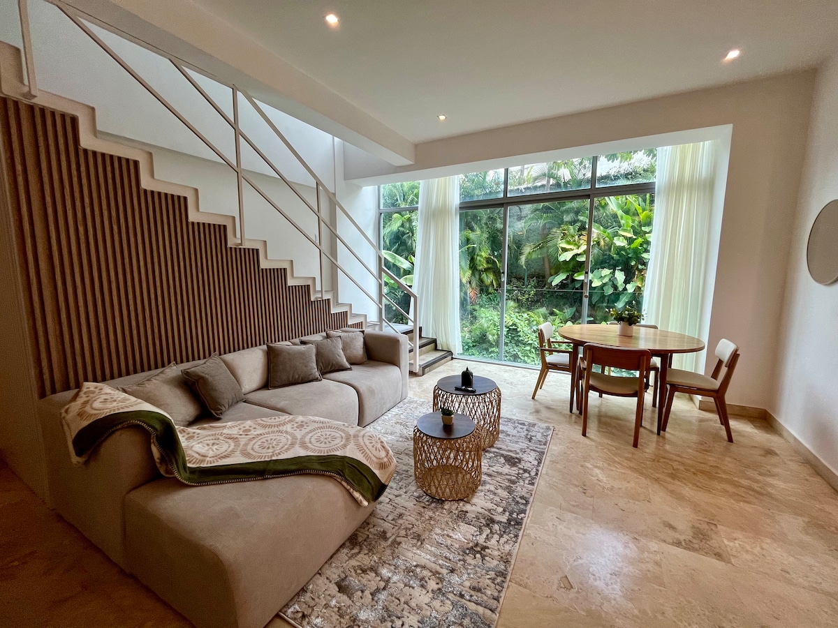 Les montagnes entrent dans la mer couvertes de jungle, balcon à l'aube, paisible et discrète. Piscines, jardins, accès à Playa Escondida. Parking intérieur. Le confort de votre maison à Tanaguarena, votre maison à Tanaguarena