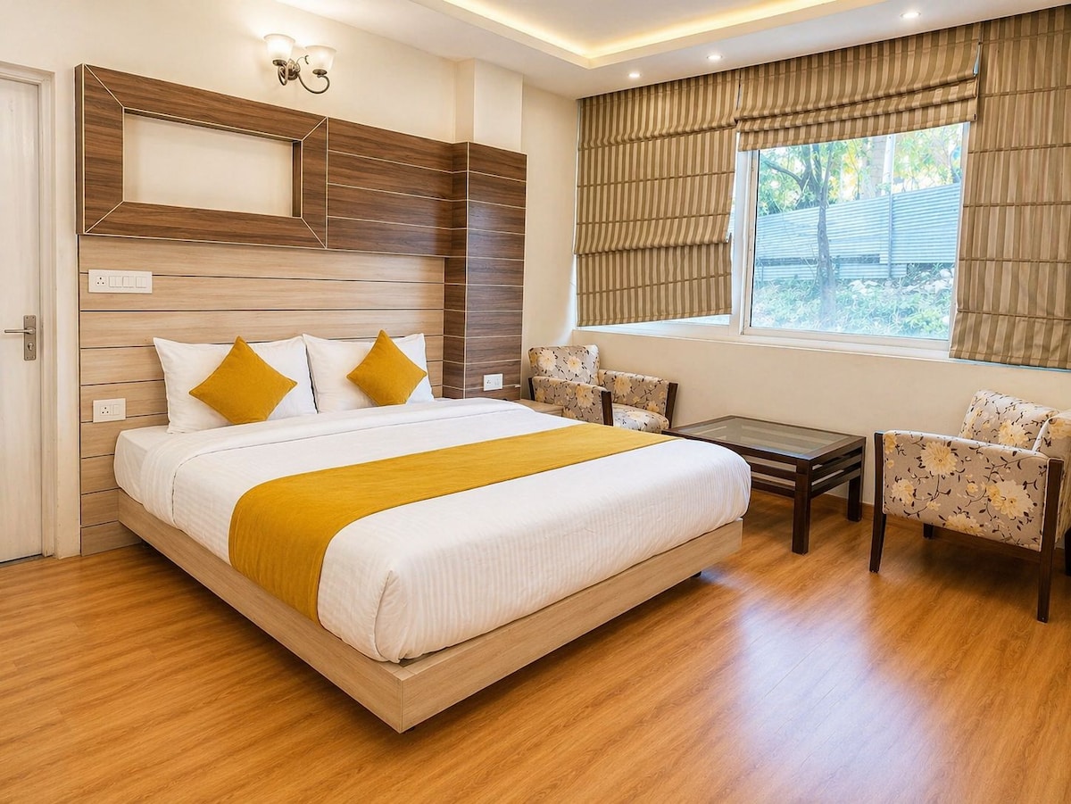 Wake up to crisp mountain air and sweeping hill views in this enchanting 1-BHK apartment. Sunlit living space, kitchenette, dining space, plush bedding, and a private balcony create a serene sanctuary to relax, reflect, and soak in nature. Thoughtful touches, cozy corners, and lush surroundings turn every moment into a sensory escape- perfect for couples, solo travelers, or small families seeking a peaceful, unforgettable mountain retreat.