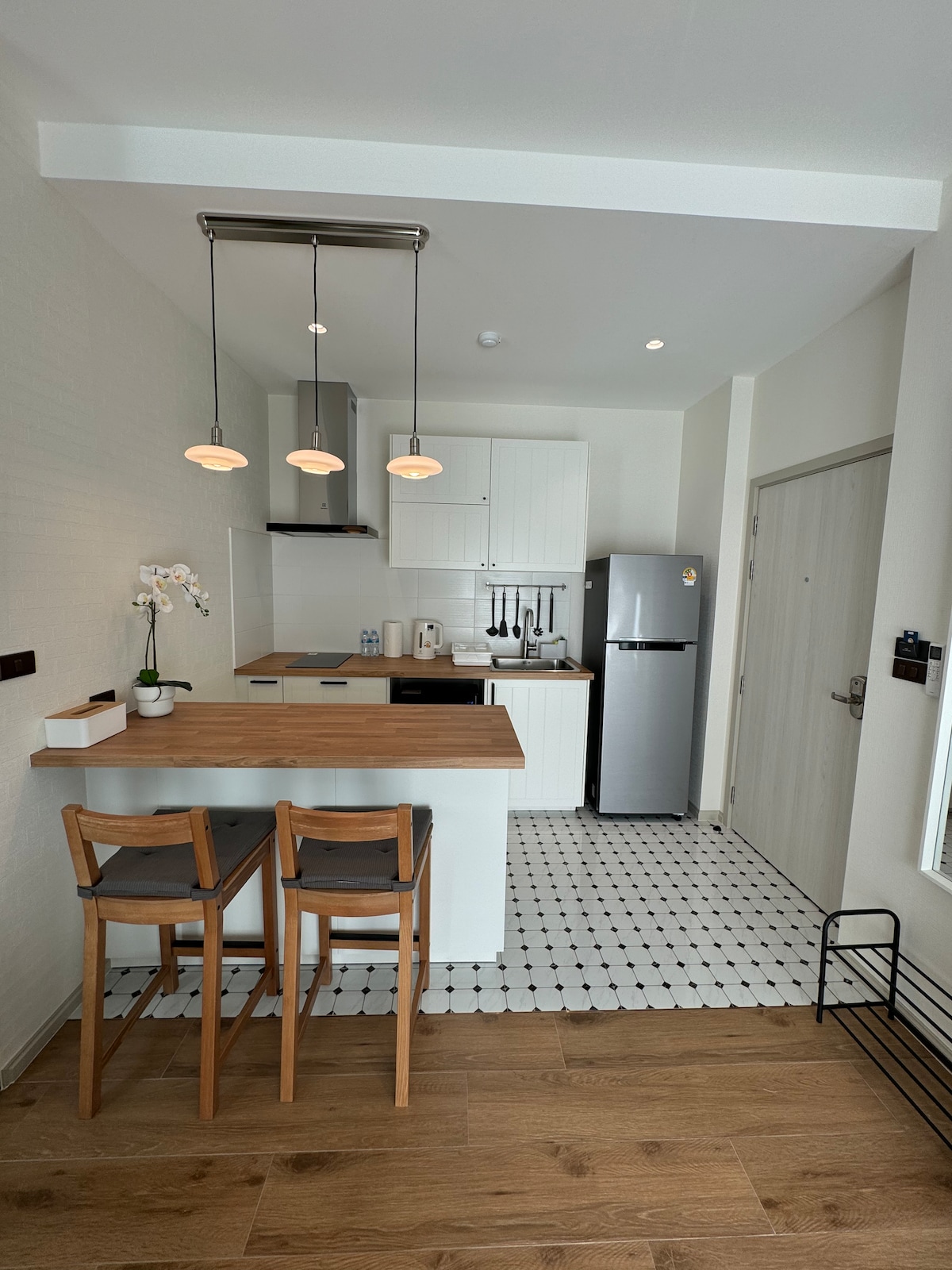Studio confortable avec accès privé à la piscine principale du complexe. La copropriété Title offre six piscines, un centre de fitness et un beau territoire vert et bien entretenu. L'appartement est entièrement équipé pour votre séjour confortable. La plage de Nai Yang et le parc national de Sirinat se trouvent à moins de 10 minutes à pied de la copropriété.