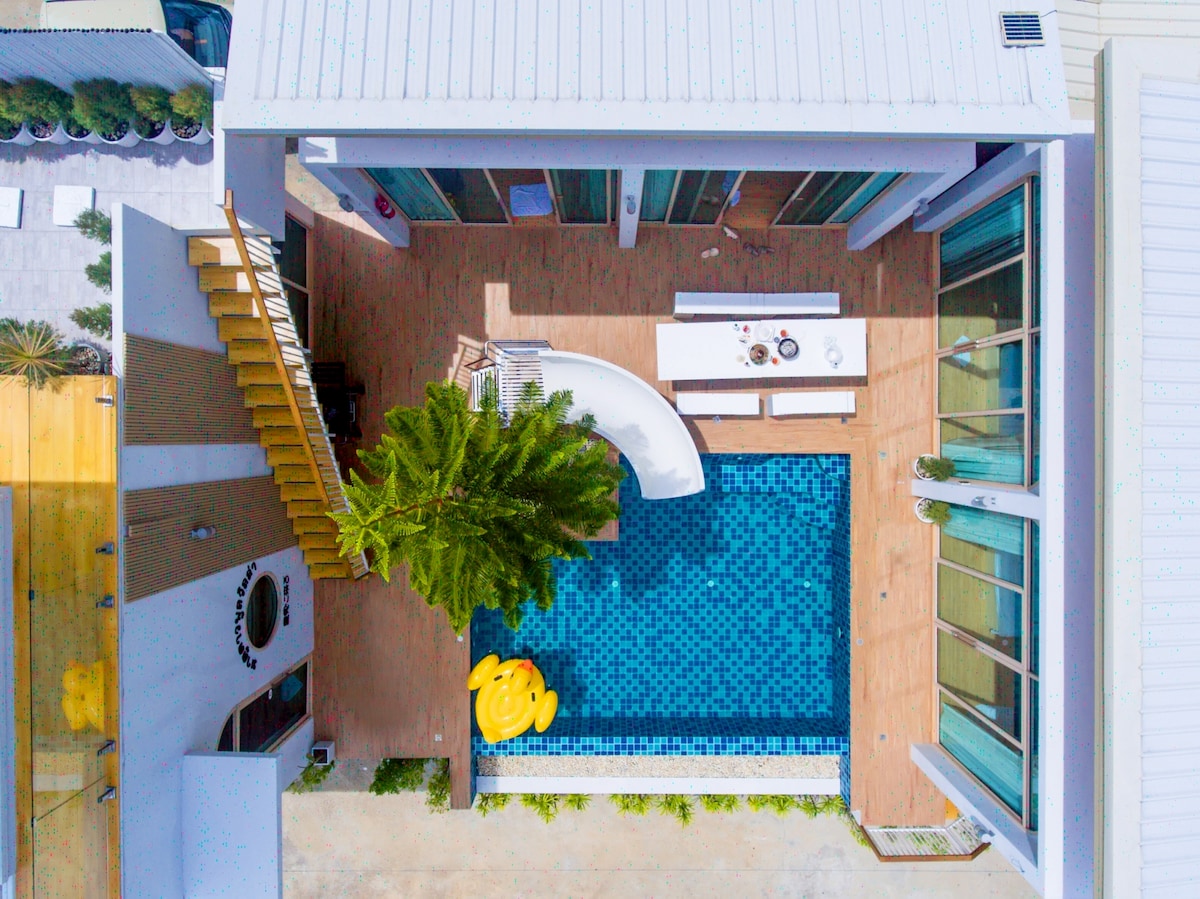 Escape to the misty highlands of Khao Kho in this modern 3-bedroom pool villa. Start your morning with cool mountain air and a private pool all to yourself, cook up a feast in the fully equipped kitchen, then end the night singing karaoke with your crew in the dedicated party lounge. Ideal for family trips, friend groups, or anyone who wants comfort, privacy, and a little adventure in the mountains.