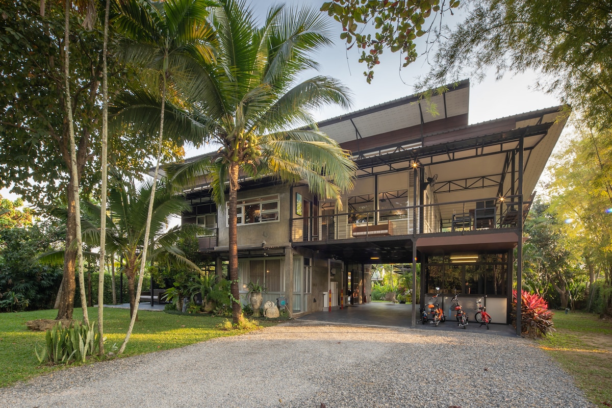 Maison naturelle avec vue sur les rizières, comme à la campagne, avec vue sur les rizières de septembre à décembre. La maison est construite en bois ancien, calme et paisible. À seulement 10 pas, vous trouverez des cafés et des restaurants, la maison Thongchai et des boutiques telles que des magasins d'argenterie, des magasins de vêtements en coton et de bois, ce qui donne une atmosphère de vacances à la campagne, mais très proche de la ville, à seulement 11 km de l'aéroport de Chiang Mai./ Safari nocturne / Botanique / et de nombreuses autres écoles internationales, temples célèbres tels que le temple Doi Kham, voyage confortable