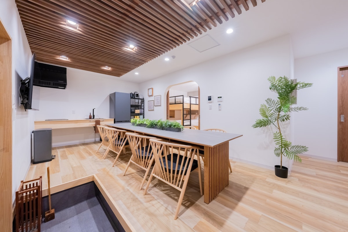 ☆Les incontournables☆ • Peut accueillir jusqu'à 5 voyageurs • Accès direct en train à Namba et Umeda en environ 30 minutes. • Sauna à vapeur, chauffage au sol et chauffage de la salle de bain • Cuisine complète avec lave-vaisselle • Intérieur élégant et relaxant avec éclairage naturel • Quartier résidentiel calme avec un café au rez-de-chaussée (ouvert à des heures limitées) Bienvenue dans notre maison privée de 55 m2 nouvellement construite, située dans un quartier résidentiel calme, à quelques pas des gares de Tsuruhashi et Momodani.