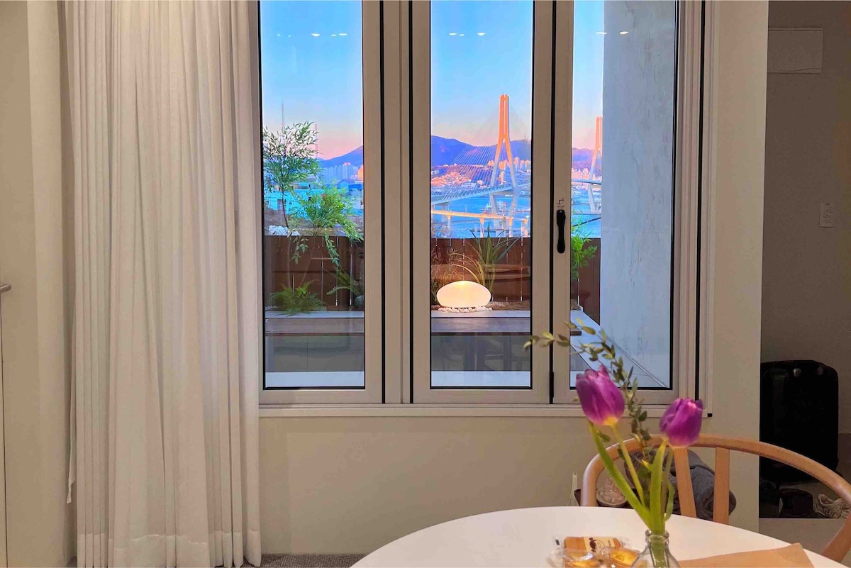 [Prix spécial pour les groupes] Santiago #Vue sur l'océan #Chambre privée #16 animaux de compagnie #Vue sur le grand pont du port de Busan #Barbecue en terrasse #Glamour