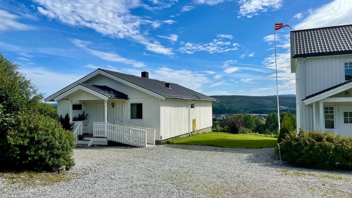 Venez à des lits prêts à l'emploi. Grande maison de 96 m2 avec grande terrasse, barbecue et belle vue. 2 chambres. Des conditions de soleil incroyables. Situé à la ferme en activité avec production laitière. Parking privé devant la porte. Rampe pour fauteuil roulant, le tout sur un seul niveau. Possibilité de voir à la fois les aurores boréales, les orignaux et les cerfs depuis la terrasse. Adapté aux enfants. Proximité immédiate de la forêt, des possibilités de randonnée et des pistes de ski. Pêche au saumon et chasse au petit gibier à proximité. Un téléphérique de recharge privé peut être apporté. La facturation est payée en fonction de la consommation.